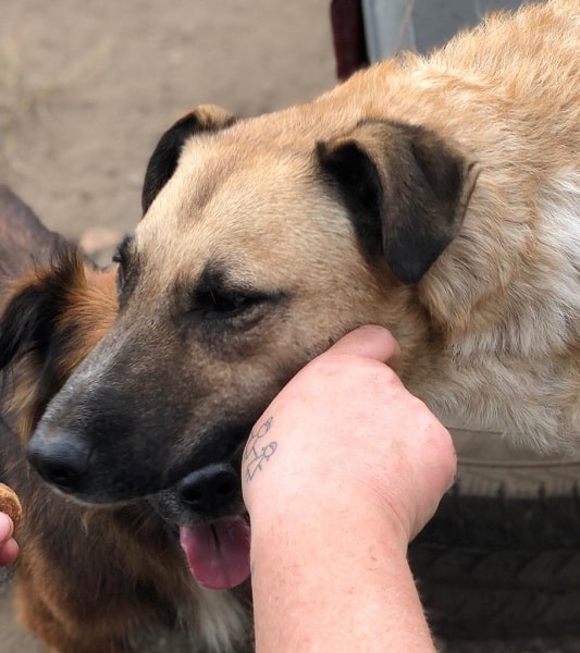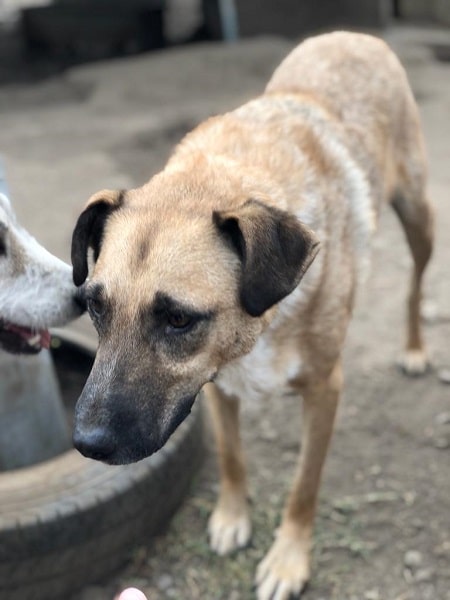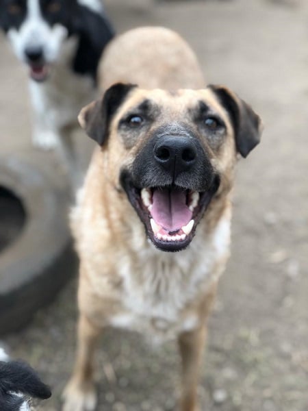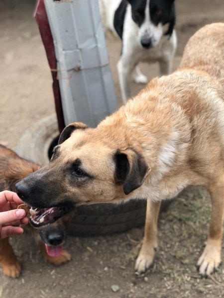 Er lebt in einer großen Gruppe mit 12 weiteren Hunden, von Klein bis Groß. Auf dem großen Areal zeigte er sich sehr verträglich. Er hat definitiv keinen Futterneid, selbst wenn Leckerchen auf dem Boden liegen. Er beobachtete unser Tun zunächst aus sicherer Entfernung. Dann war die Neugierde und die Lust auf unsere Leckerchen größer. Er kam immer näher und holte sich die Leckerchen gut aus der Hand ab. Dabei konnten wir ihn immer mehr vorsichtig berühren. Wer ausreichend Hundeerfahrung hat, wird ihn in kurzer Zeit für sich gewinnen können. Souveräner Zweithund wäre hilfreich, aber kein Muss.