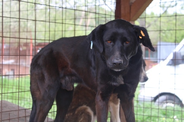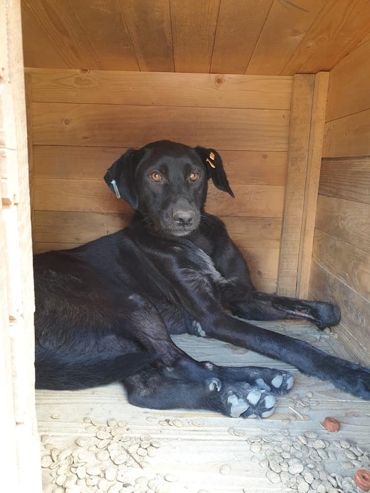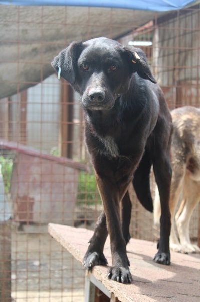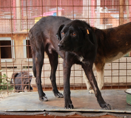 MILORD beobachtete uns überwiegend vom Hüttendach aus. In unsere Nähe traute er sich nicht. Hingeworfene Leckerlis nahm er aber gern entgegen. Ein hübscher Rüde dem man den fehlenden Menschenkontakt deutlich anmerkt.