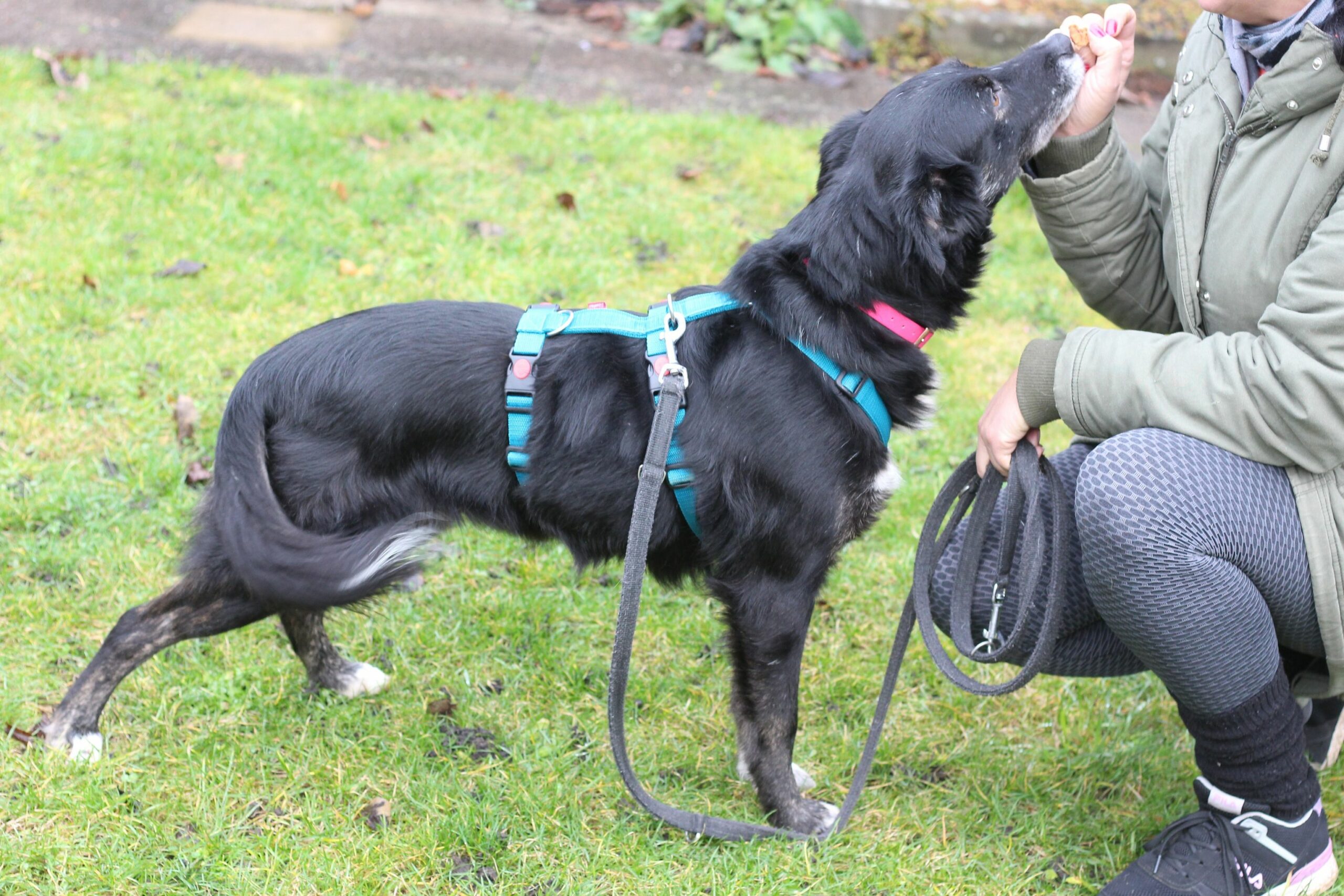 In deren Gesellschaft kann sie auch eine angemessene Zeit alleine bleiben, ganz alleine ist sie nicht so gerne. Das müsste weiter mit ihr geübt werden.