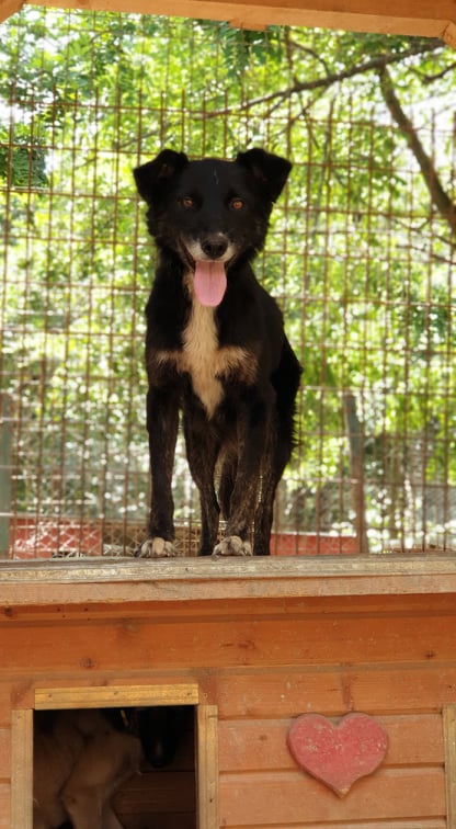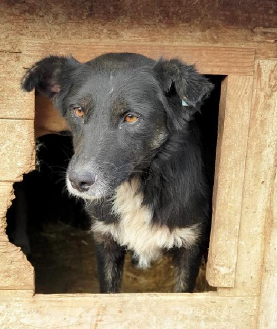 MINDY beobachtete uns neugierig aus der Hütte heraus. Sie ließ sich sanft an der Schnauze berühren, wich dabei aber zurück. Für MINDY suchen wir ein verständnisvolles Zuhause – gerne mit einem souveränen Ersthund – in dem sie in Ruhe ankommen und das Vertrauen zu uns Menschen aufbauen kann. OM: rechts gelb 2322