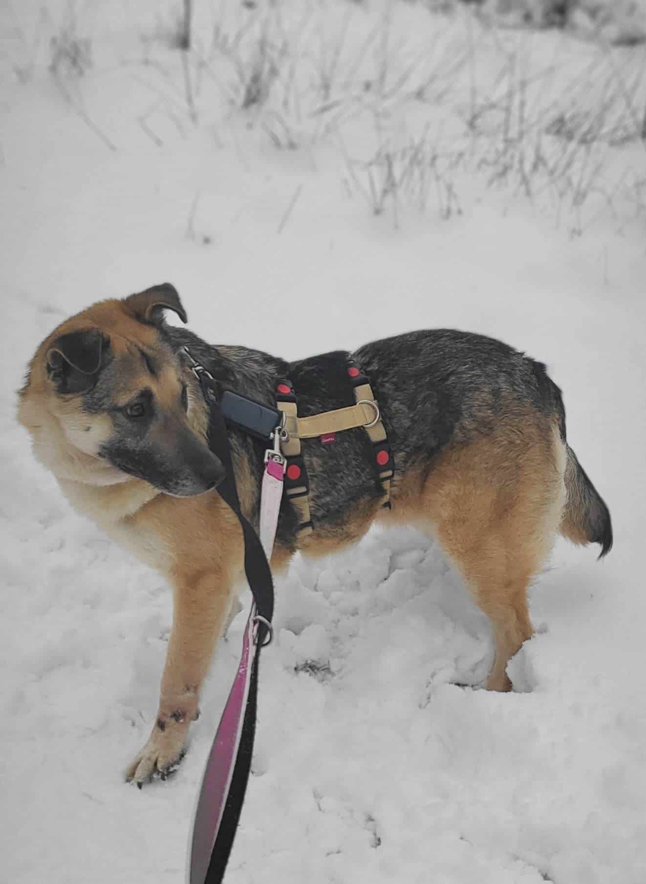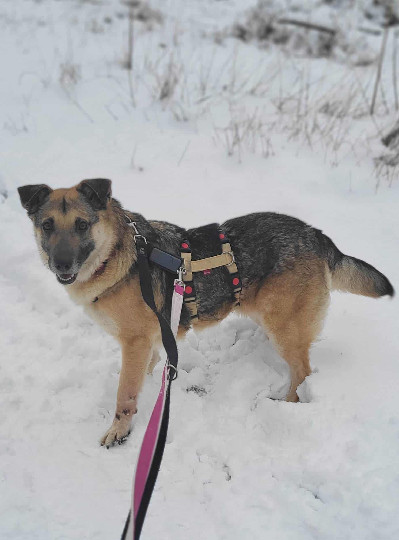 Bei Begegnungen draussen mit Menschen und auch mit Hunden ist sie noch ein wenig unsicher, aber es wurde und wird mit der Zeit schon besser. Dasselbe gilt für Autos, die an uns vorbei fahren.