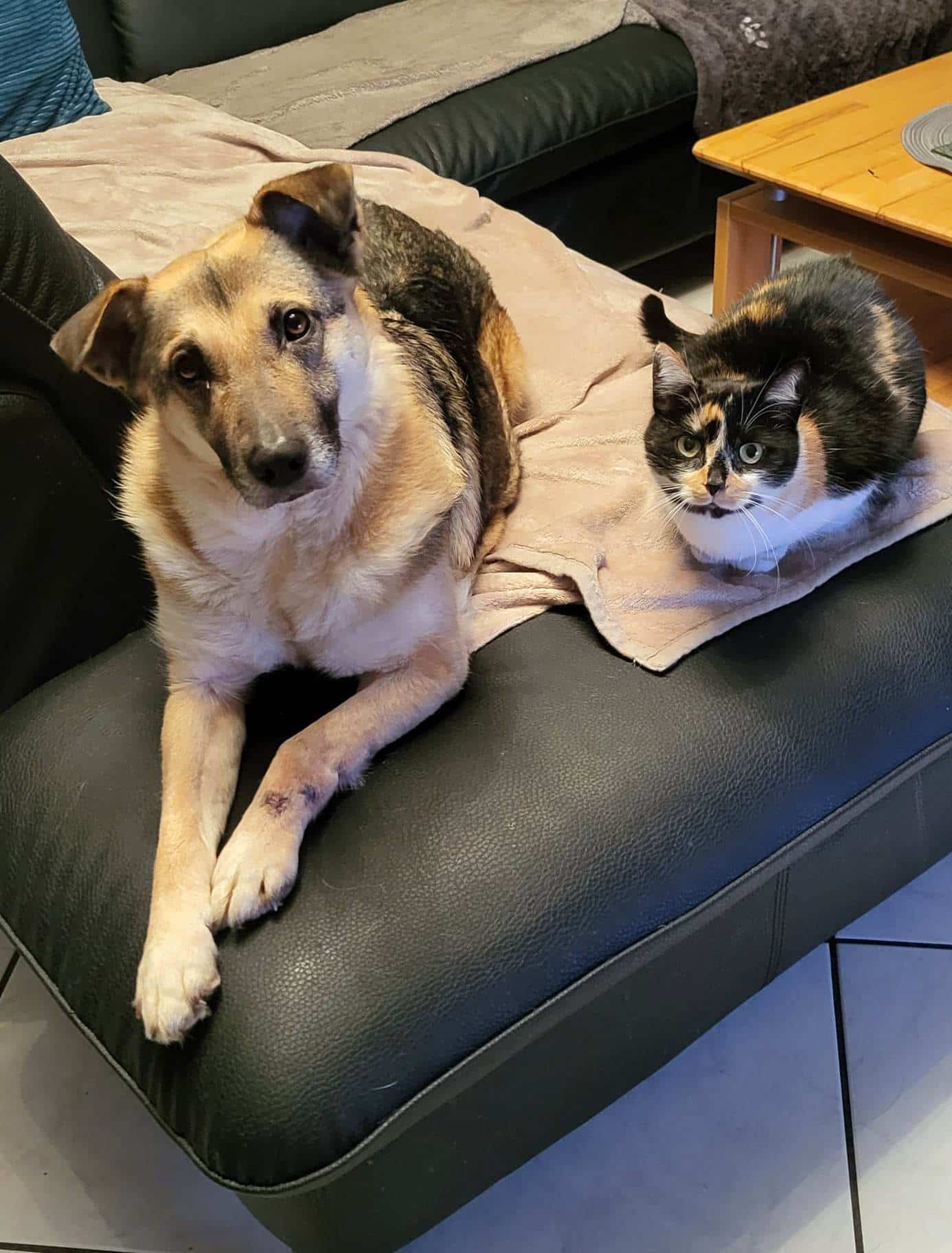 Minettchen lebt hier mir 2 Katzen und 2 weiteren Hunden zusammen. Alles beide klappt sehr gut. Mit Kindern ist es auch kein Problem, aber sie sollten schon grösser und verständnisvoller sein, da sie doch manchmal recht stürmisch ist.