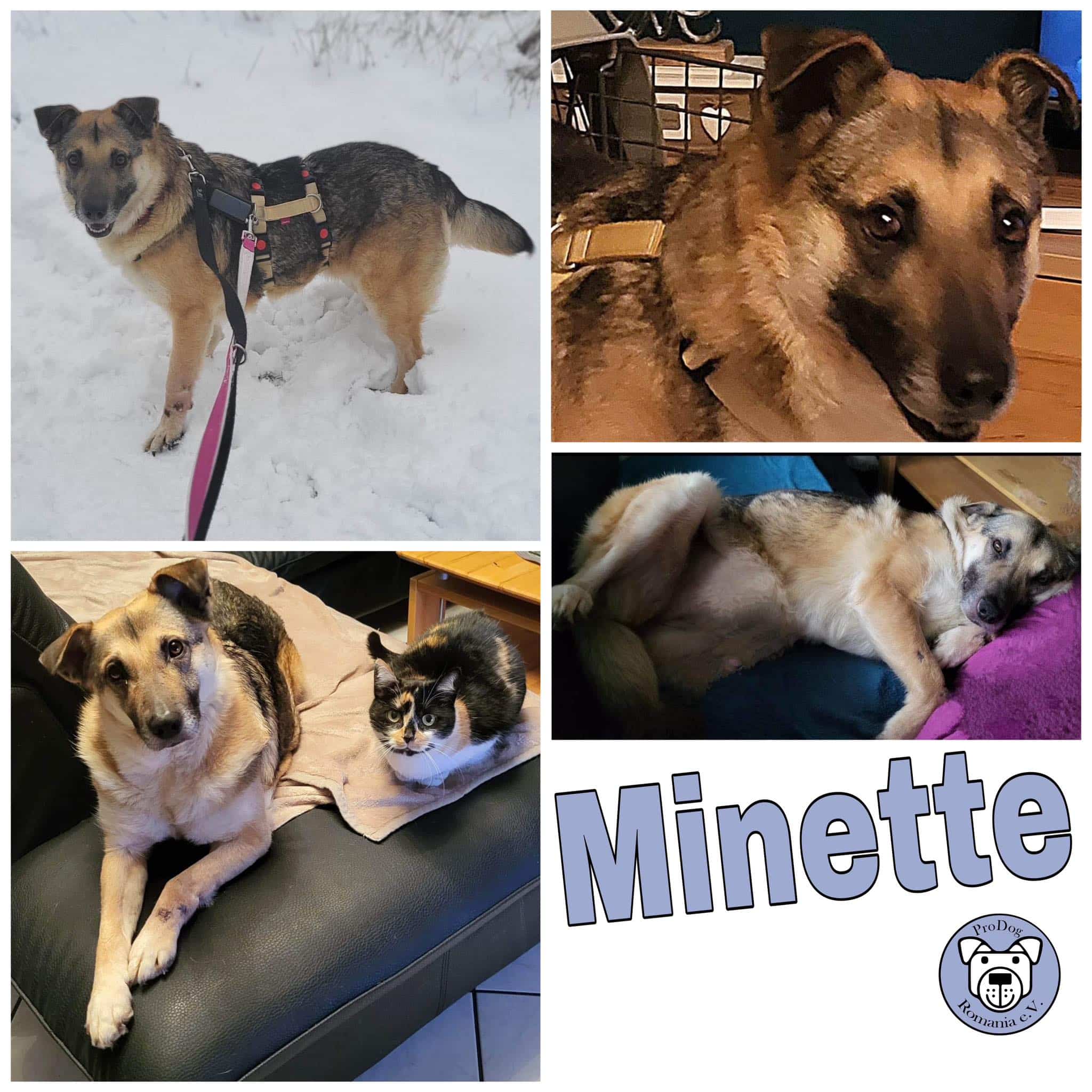 Sie kam hier an und war direkt total zutraulich und hat auch direkt ganz viele Küsschen verteilt. Minette bindet sich Schäferhundtypisch sehr an ihrem Menschen und auch andere Schäferhundmerkmale sind bei ihr zu finden, wenn man es mal so verallgemeinern will, nur gute natürlich.