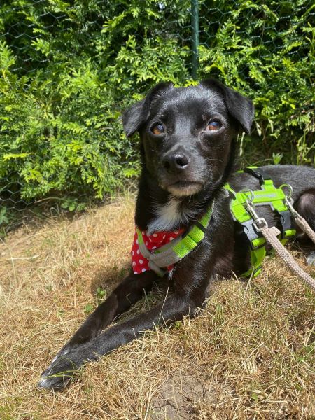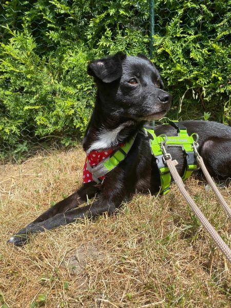 MINIMAUS ist eine fröhliche, junge Hündin, die sehr gerne spielt und am liebsten die ganze Zeit kuschelt. Sie findet aber auch sehr gut und schnell zur Ruhe und kann problemlos allein bleiben. Dann schläft sie ruhig auf ihrem Kissen, oder in Ihrer Box.