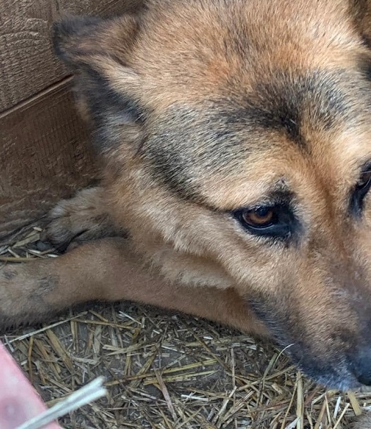 Er liegt nur in seiner Hütte, ist nicht wirklich ansprechbar. Er ist nicht panisch, aber schaltet vom Kopf her auf Einfrieren, wenn man ihn anfasst.