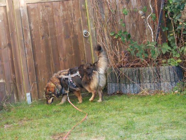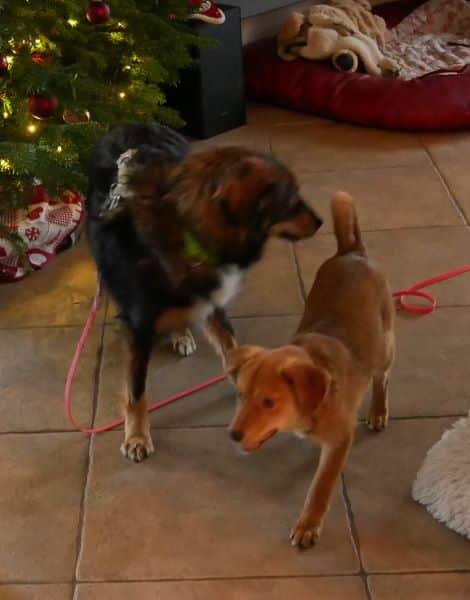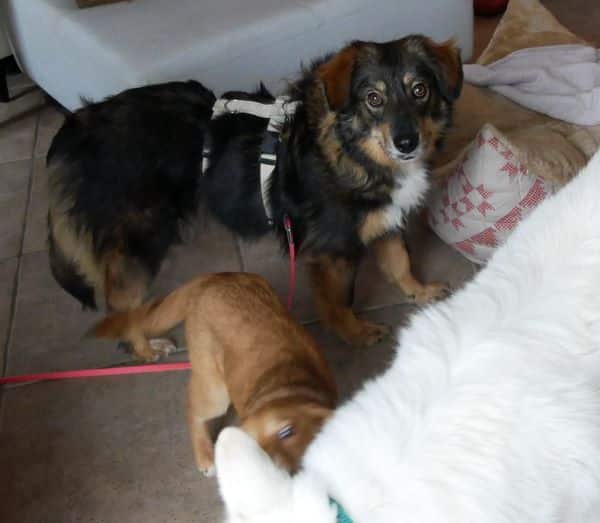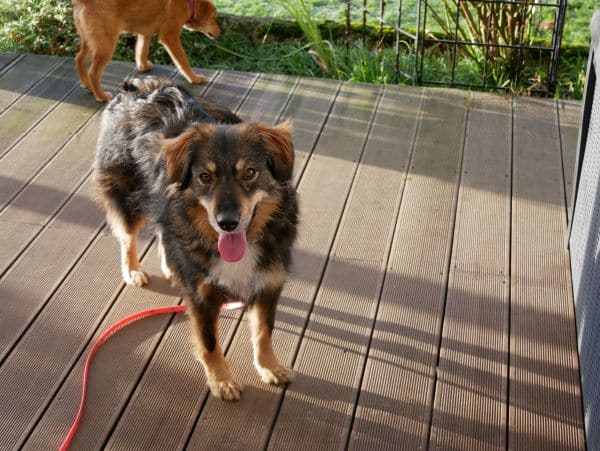 Die hundeerfahrenen Katzen gehören für Mirella mit zum Rudel. Sie ist stubenrein, schläft nachts durch, kann eine angemessene Zeit alleine bleiben. Bett und Sofa sind hier tabu, das wird gerade gelernt. Gekuschelt wird dennoch auf unserem extra dafür bereitgestellten Meeting Point; das hat Mirella schnell verstanden.
