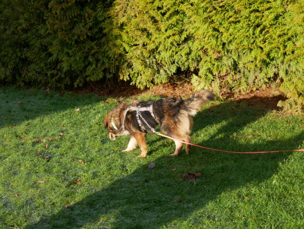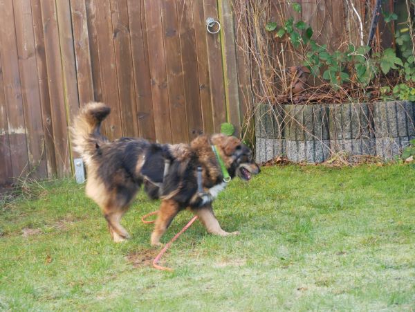 Ein gemächlicher Spaziergang ist nach ihrem Geschmack. Sie schaut, sie schnuppert, sie lässt sich den Wind um die Nase wehen. An Fasanen, Hasen und Rehen scheint sie derzeit noch nicht interessiert; aber auch das könnte sich nach einer längeren Ankunftszeit ändern; bleibt abzuwarten. Home Office und sowieso Indoor ist sie eine sehr entspannte, ruhige Begleiterin; sie ruht viel und wartet auch hier einfach auf das was kommen mag. Autofahren hingegen ist noch nicht so ihr’s; vermutlich sitzt die lange Herreise noch sehr in den Knochen.