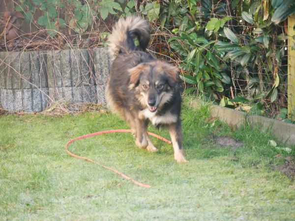 Mirella ist eine eher ruhige Hündin, die gerne mit ihrem Menschen zusammen sein mag. Sie ist unaufdringlich, freundlich, abwartend. Sie versteht sich mit den anderen Hunden hier im Haushalt, ist eher die abwartende, lässt sich nicht aus der Ruhe bringen. Unsere kleinen Wirbelwind-Welpen lässt sie geduldig gewähren und bleibt einfach still. Zum Mitmachen kann die Bande sie derzeit noch nicht animieren, aber das kann ja noch kommen.
