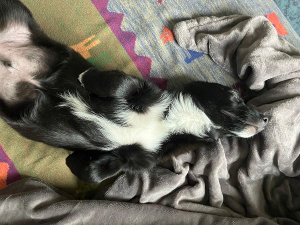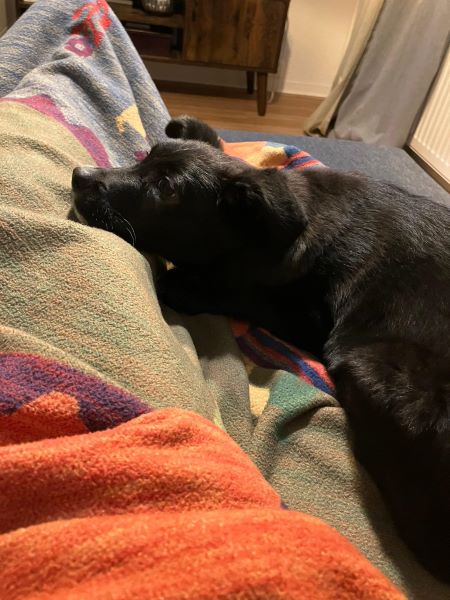 Auf der anderen Seite kommt er sehr gut zur Ruhe, er hat seinen „safe space“, da fährt er auch komplett runter und zwar bis ich es auflöse – oft bleibt er einfach noch weiter liegen. Die Zeit braucht er auch, man hört es an seiner Träumerei, da wird alles nochmal verarbeitet, da passiert noch ganz viel.