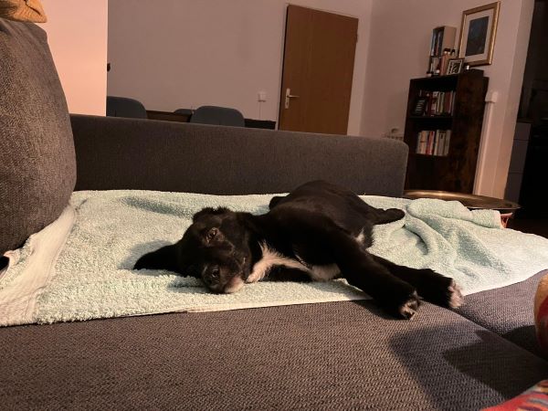 Weil er doch noch ein kleines Hundekind ist, üben wir das alleine bleiben mit sehr langsamer Steigerung, aktuell sind wir bei 50 Minuten, das ist überhaupt kein Problem, er ist bei meiner Rückkehr völlig entspannt.