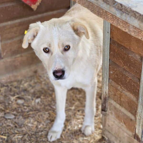MISCHA hielt sich im Kennel eher im Hintergrund auf. Er beobachtete interessiert, was wir so machen, kam aber nicht aktiv auf uns zu. Als wir uns ihm näherten, versuchte er anfangs auszuweichen. Da dies nicht möglich war, ließ er die Anfassversuche über sich ergehen. Nach einer Weile schien er sie etwas zu genießen und kam dabei auch einen Schritt näher. In ruhiger Umgebung taut MISCHA vermutlich binnen kurzer Zeit auf.