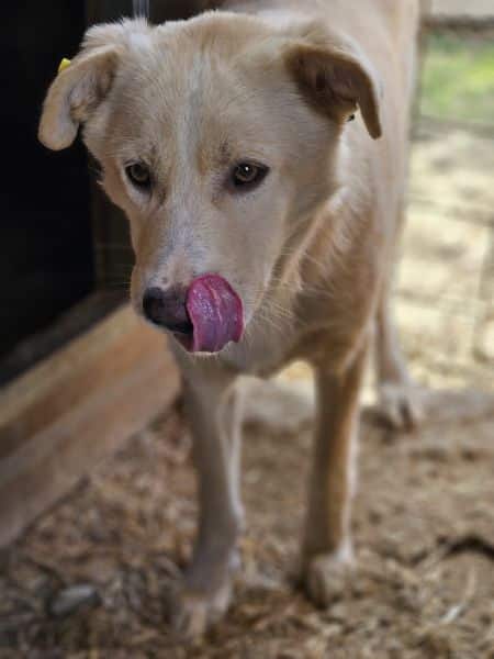 Als wir 3 Tage nach Ersterfassung den Kennel noch einmal betraten, kam MISCHA in seiner eher ruhigen Art aktiv auf uns zu und ließ sich gern von uns streicheln.
