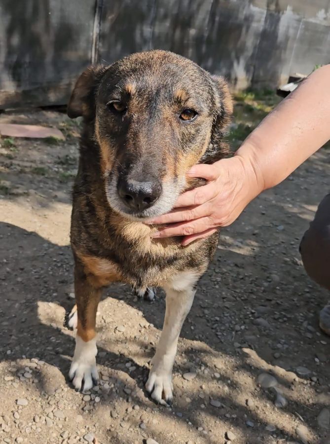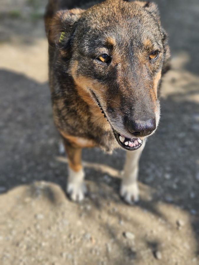 Die tolle MISS SOPHIE begrüßte uns freudig am Eingangstor des Shelters, als wir zusammen mit Tierärztin Irina eintrafen. Von Irina lässt sie sich problemlos überall anfassen, weil sie Vertrauen zu ihr gefasst hat. Uns gegenüber war sie noch etwas verhalten, weil wir für sie Fremde sind, und sie etwas Zeit zum Auftauen braucht. Ist sie einmal aufgetaut, ist sie offen, neugierig und einfach zum lieb haben. MISS SOPHIE lebt derzeit freilaufend im Gelände innerhalb eines gemischten Rudels.