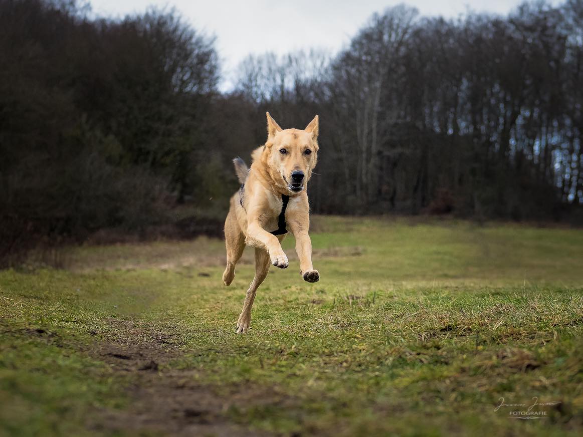 Mitchell beherrscht die Grundkommandos, läuft gut an der Leine. Der Rückruf an der Schleppleine klappt auch schon gut.