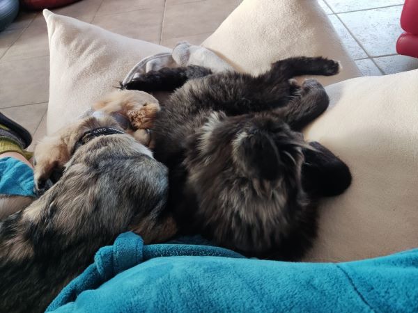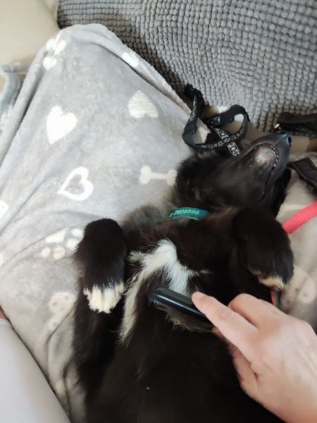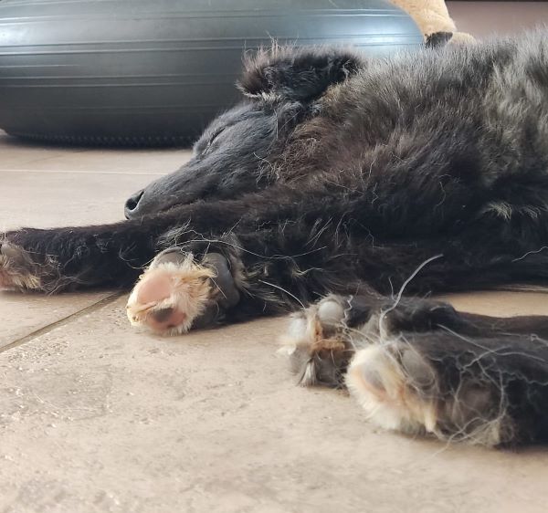 Ist man aufmerksam bei ihr, ist Moa stubenrein; sie ist im Home Office ruhig dabei, schläft nachts durch. Sie ist absolut nicht futterneidisch, im Gegenteil, sie sollte Zeit bekommen, in Ruhe ihre Portion zu verspeisen. Man kann ihr gefahrlos jederzeit Dinge wieder abnehmen. Ihr weiches schwarzes Teddyfell mit silbergrauen Akzenten bedarf etwas an Pflege; Moa genießt es und schläft dabei ein. Eine wunderbare meditativ anmutende Beschäftigung für Mensch und Hund.