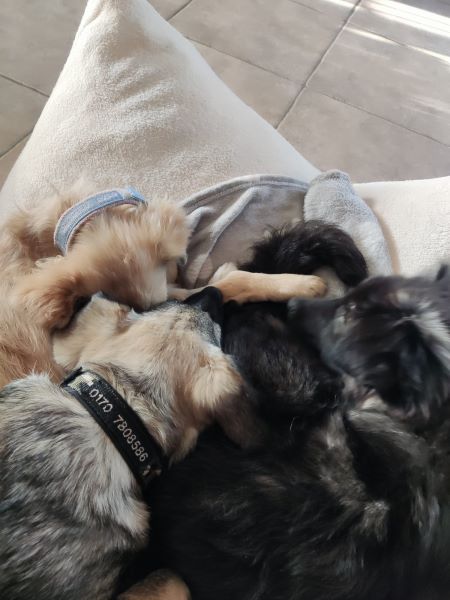 Mit dem Pflegefrauchen auf der Krone kuscheln liegt ebenfalls hoch im Kurs; hier dürfen gerne auch noch ein paar PS-Geschwister dabei sein. Die ersten Gassirunden waren noch aufregend, inzwischen kann sie es aber immer mehr genießen und läuft prima mit.
