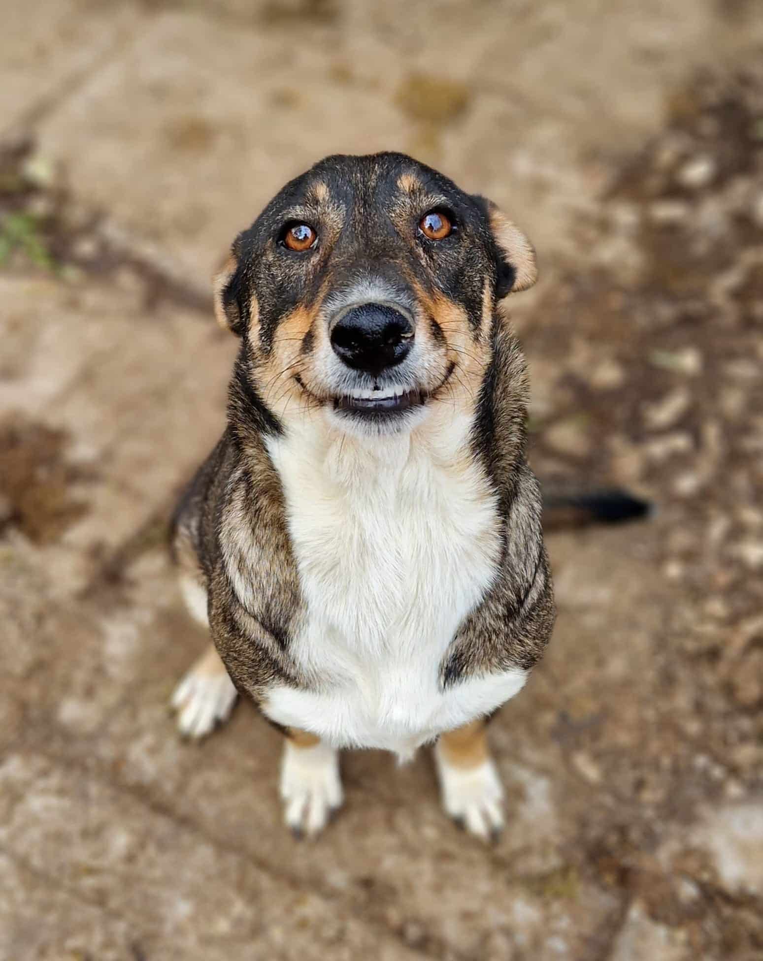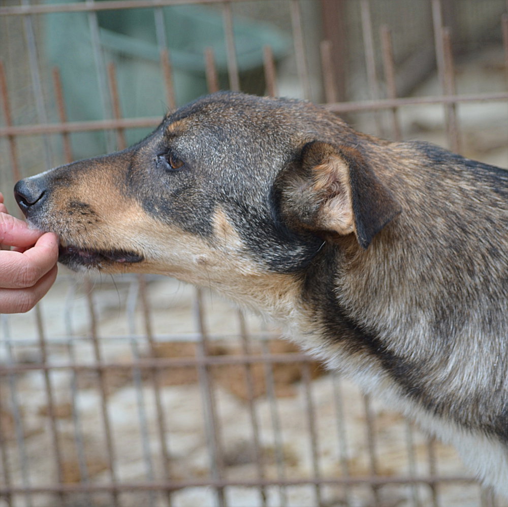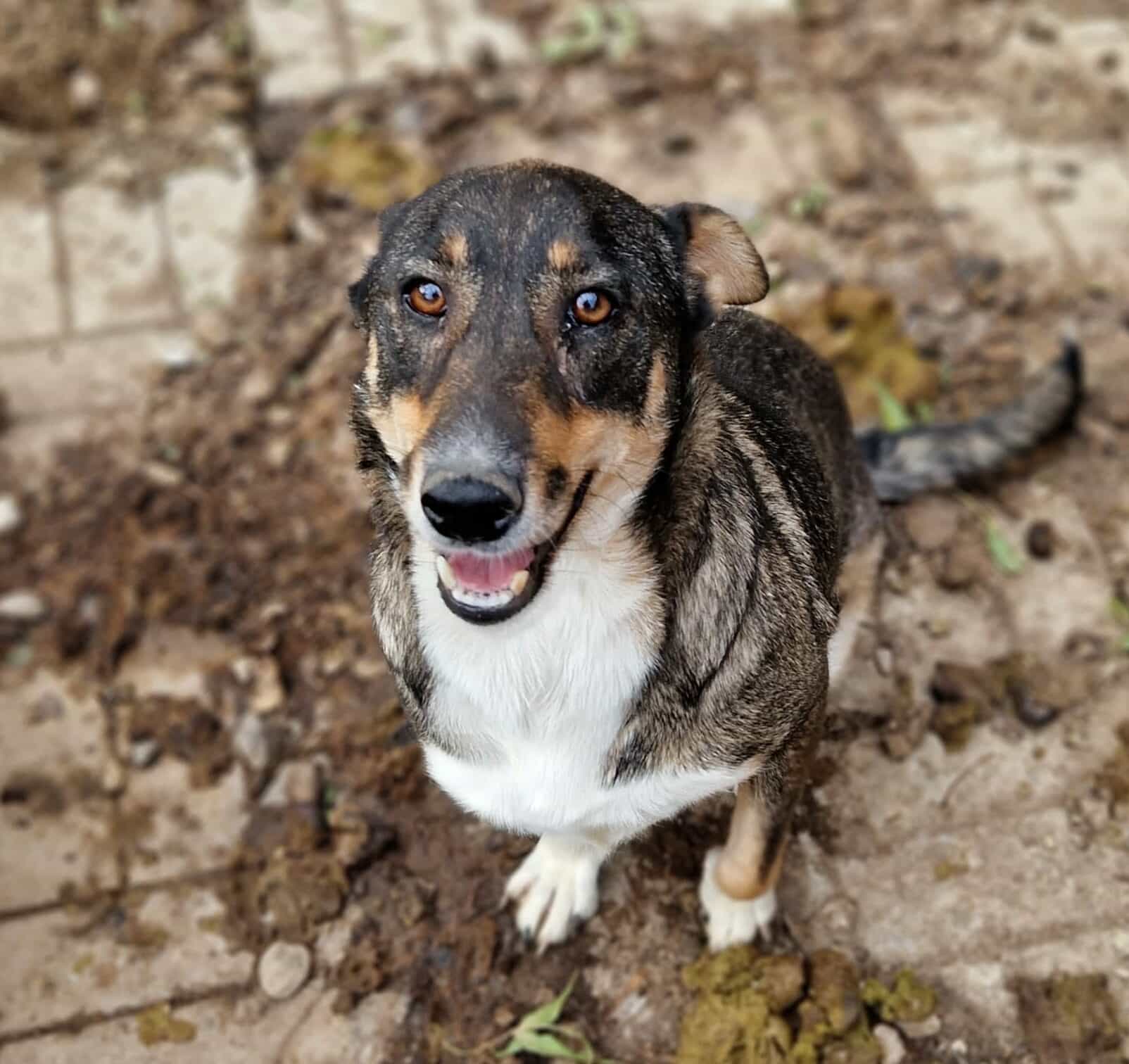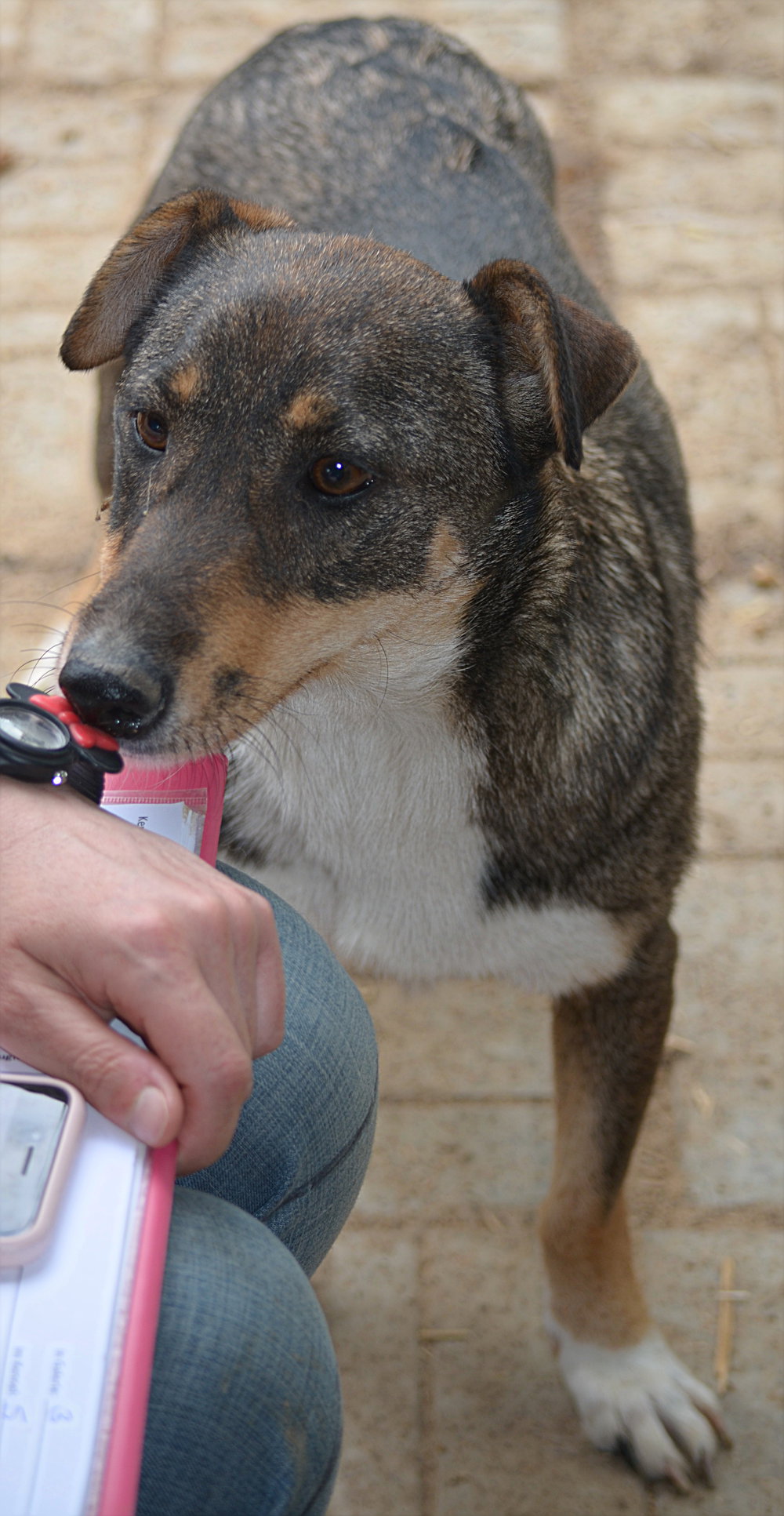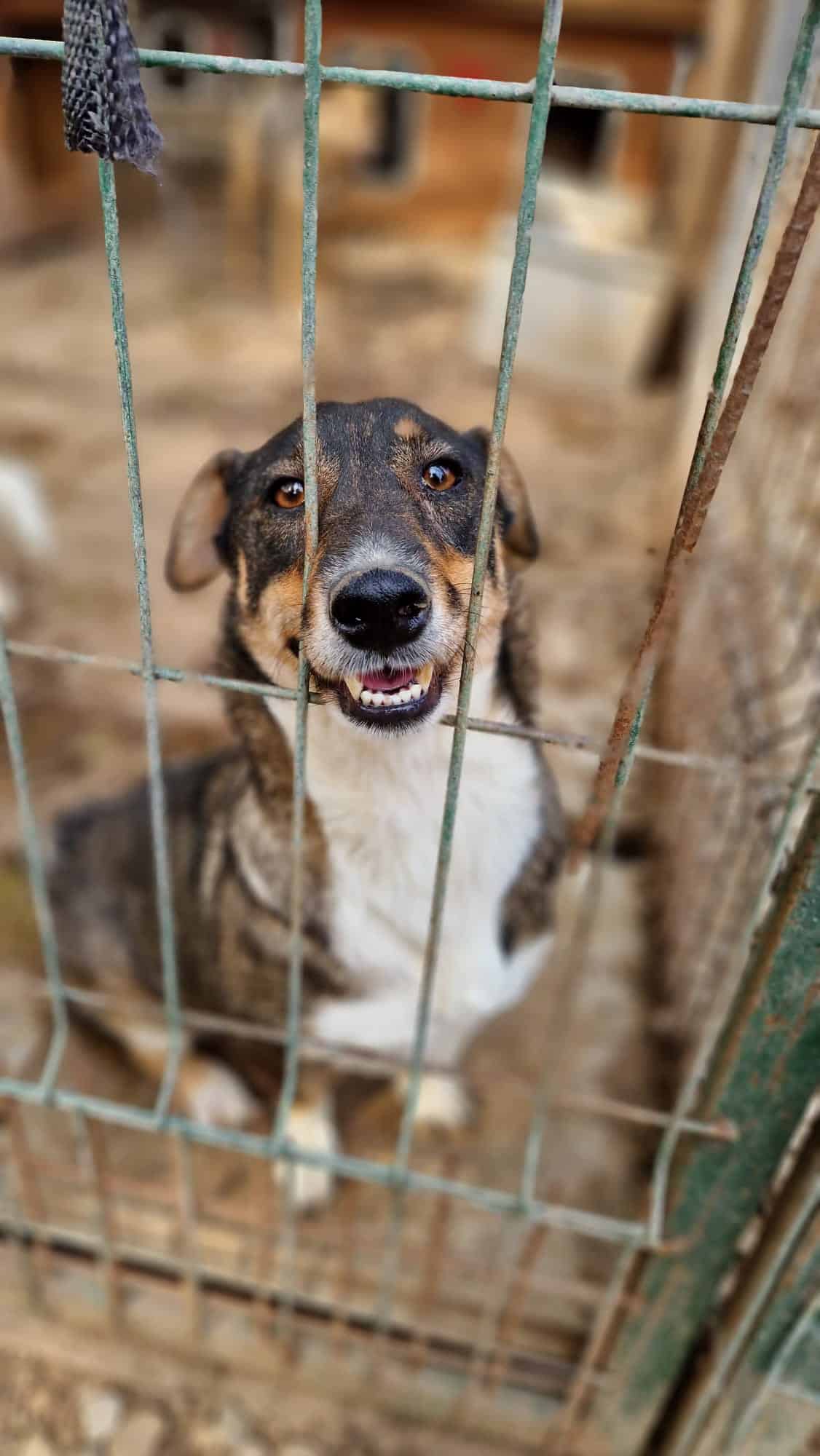 MOCHA hing am Kennelgitter und freute sich über unseren Besuch. Sie ließ sich sofort problemlos streicheln, setzte sich zu uns und genoss die so seltenen Momente, wo Menschen sie beachten. Eine nette kleine, nur noch ein ganz klein wenig schüchterne Hündin.
