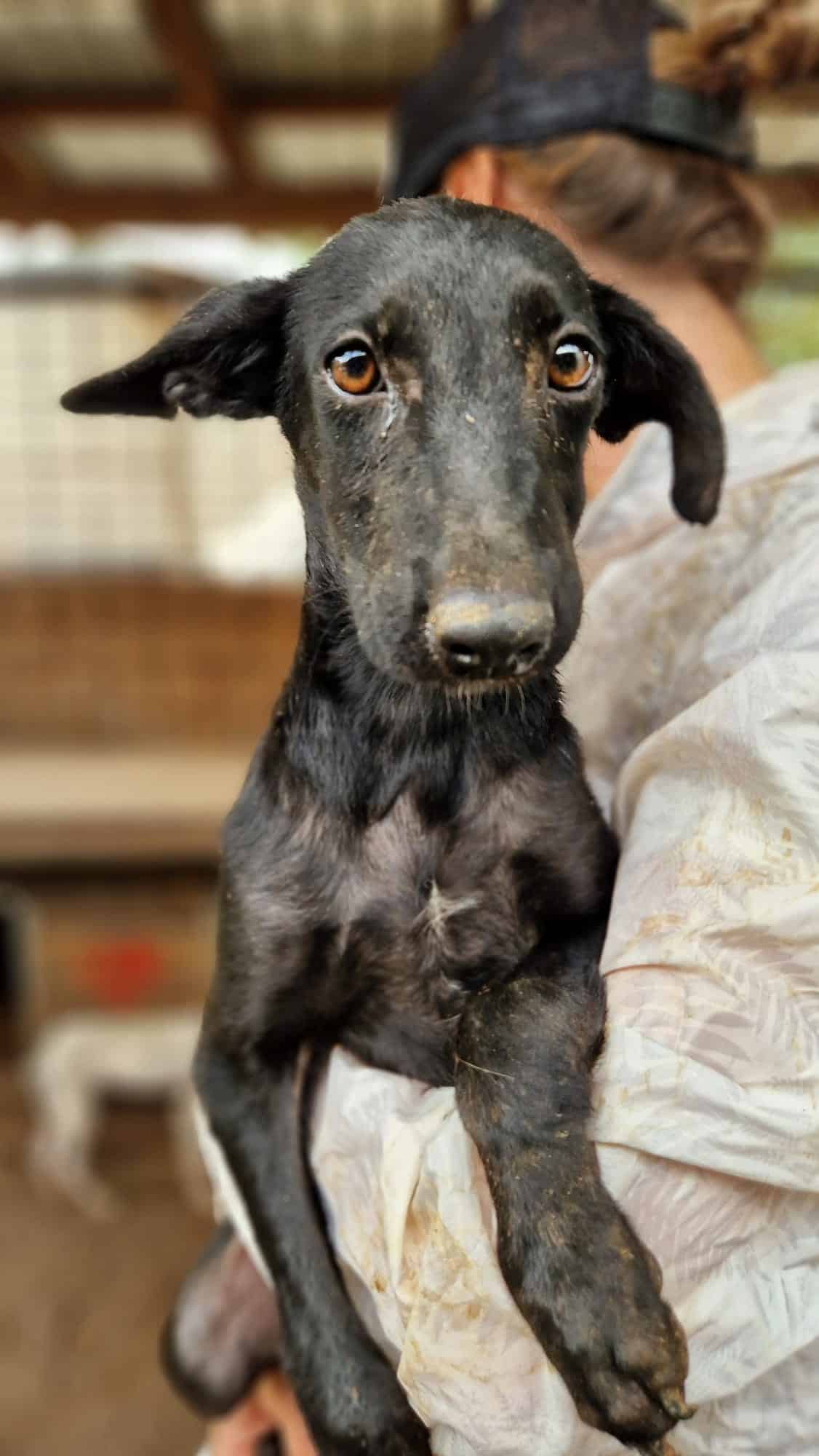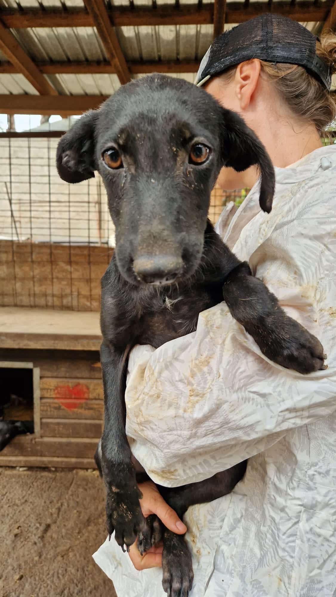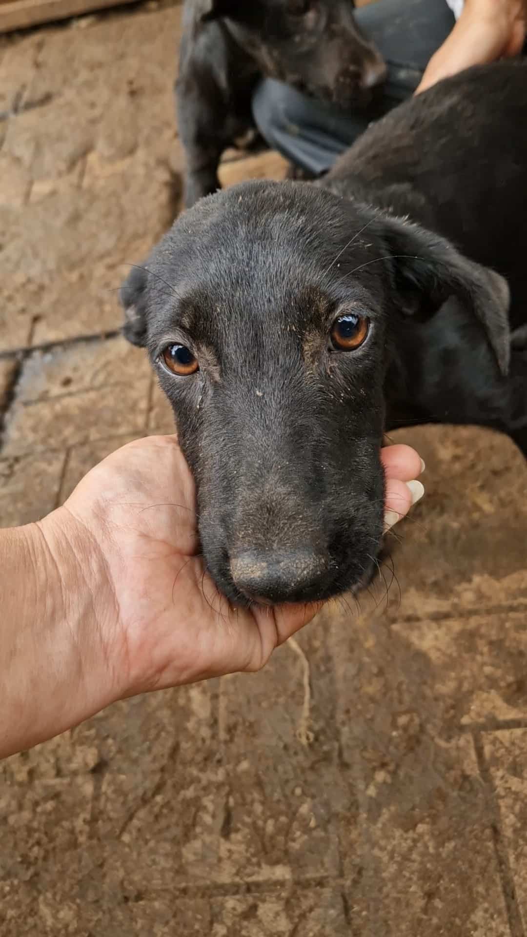 Der sehr freundliche MODESTE sitzt mit seinen 2 Geschwistern und 14 weiteren Junghunden zusammen und zeigt sich gut verträglich. Neugierig, aber nicht aufdringlich, ließ er sich gerne streicheln, auch auf den Arm nehmen war kein Problem für den lieben Junghund, auch wenn er das sicherlich nicht kennt. Doch auch bei ihm sind wir in Sorge um seine Zukunft, da scharze Welpen kaum Plätze finden und viele im Shelter aufwachsen müssen. Wir hoffen, dass ihm und seinen Geschwistern dieses traurige Schicksal erspart bleibt.