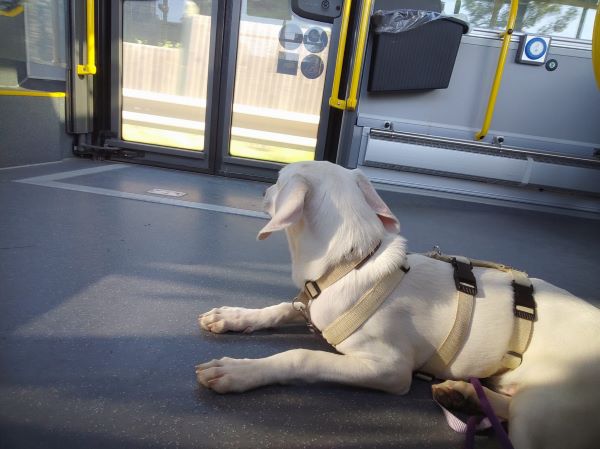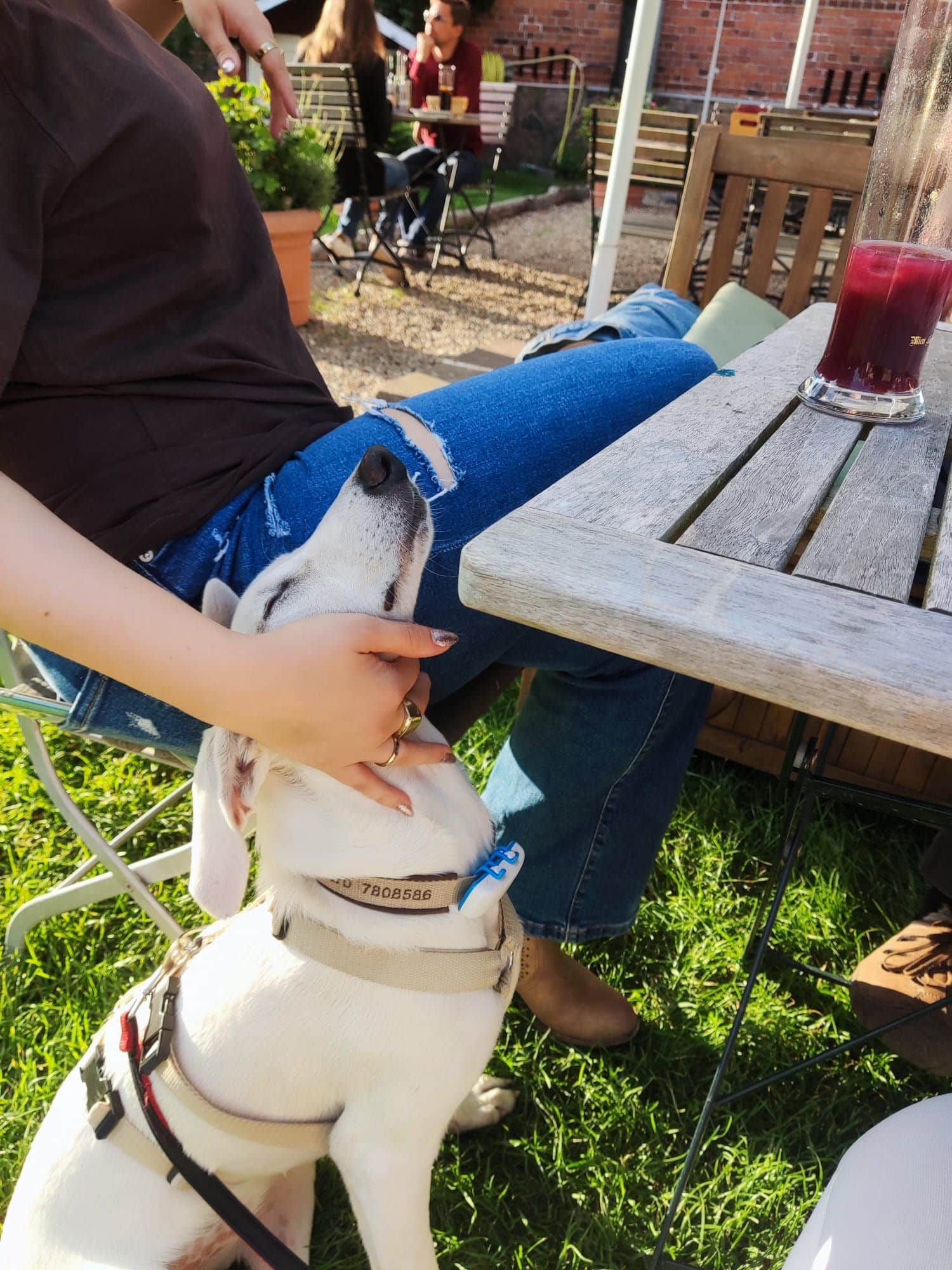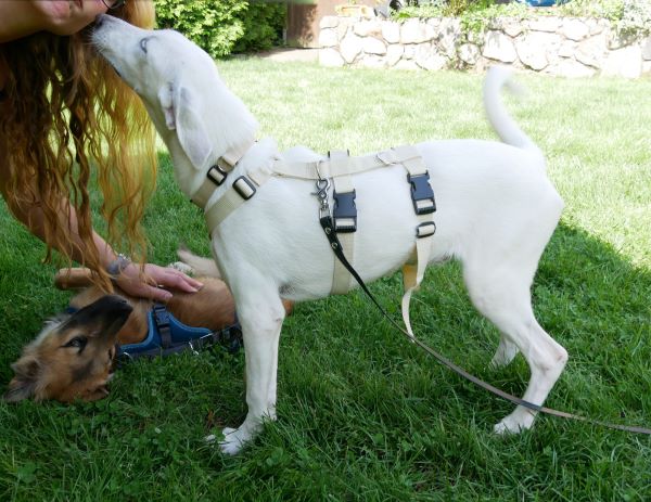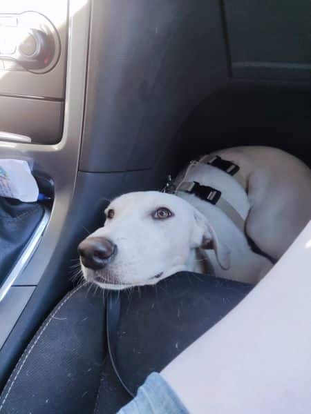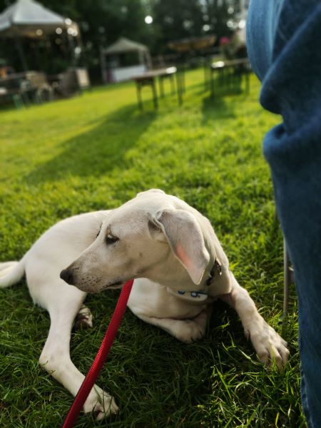 Sie möchte alles richtig machen, ist aufmerksam, folgsam. Sie ist im (eingezäunten) Freilauf abrufbar, leinenführig, scheint keinen Jagdtrieb zu haben, auf gutem Wege stubenrein zu sein, schläft nachts durch, ist nicht futterneidisch, man kann sie immer und überall anfassen. Wir sind Bus gefahren, sie ist im Restaurant dabei, sie bettelt nicht am Tisch, sie springt nicht auf die Couch, sie ist kein Kläffer. Und nachdem wir bzw sie geklärt hat, dass bei Autofahrten auf gar keinen Fall eine Box angesagt ist (ihr Chauffeur Markus kann ein Lied davon singen), ist sie gesichert im Fußraum die beste Beifahrerin. Immer das PS Frauchen im Blick.