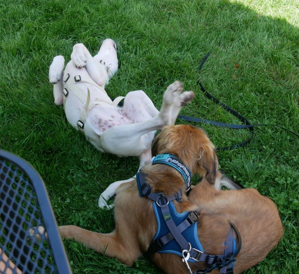 Dadurch, dass sich inzwischen neues stützendes Gewebe um die Bruchstelle gebildet hat, kann sie im Moment jedoch ein fast normales LaufLeben haben. Kontinuierliche und gemäßigte Bewegung, gemütliche Spaziergänge, kleine Spieleinheiten haben in den 2 Wochen hier auf PS Wunder bewirkt. Die gesamte Muskulatur ist gestärkt und Mörle ist mit Spaß und Freude voll dabei.