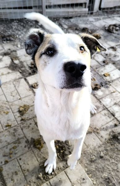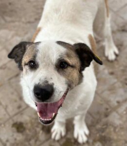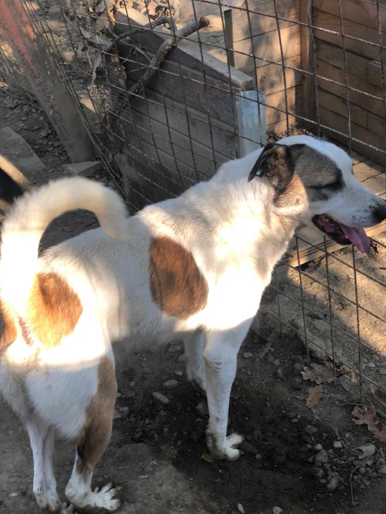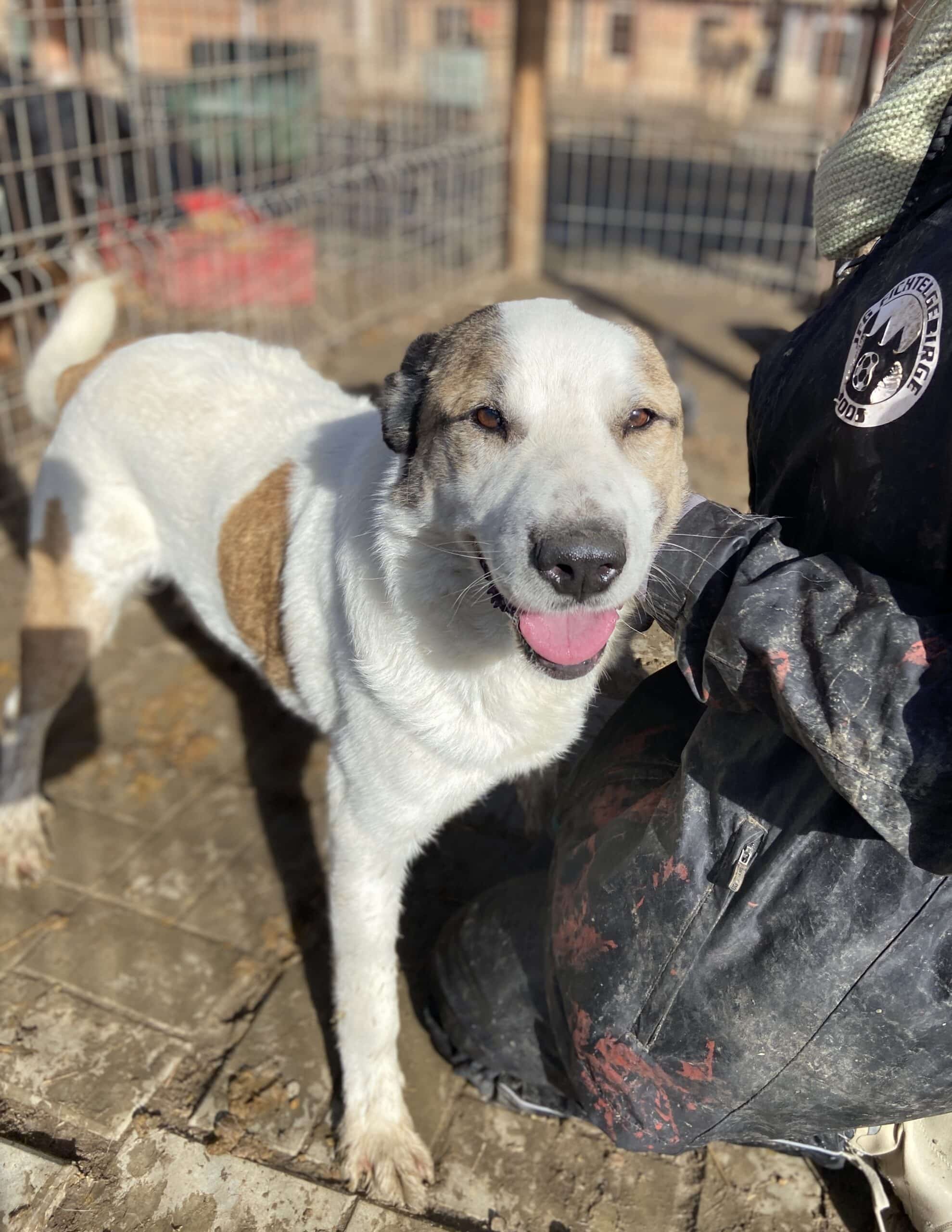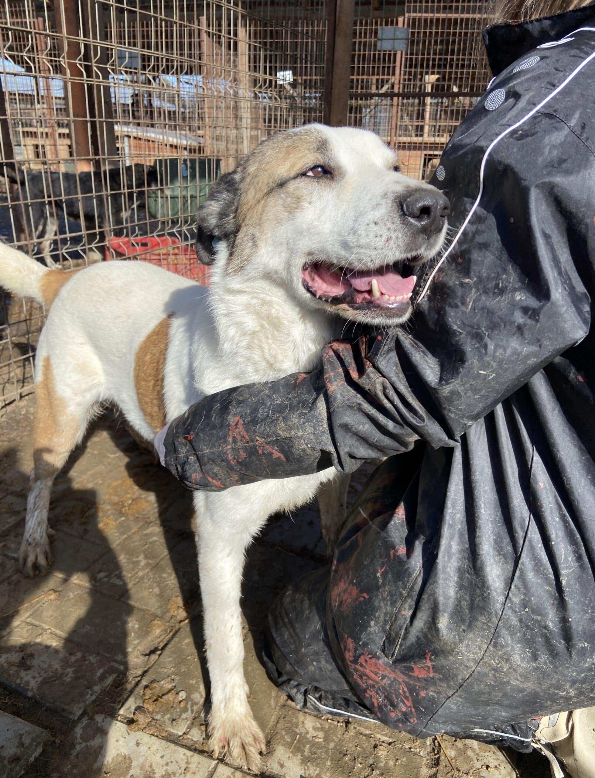 MOGLI erwartete uns schon an der Kenneltür. Leider sahen wir, dass er Hautprobleme entwickelt. Der super freundliche Bub findet Menschen total interessant und Leckerlis noch mehr.