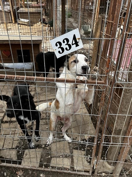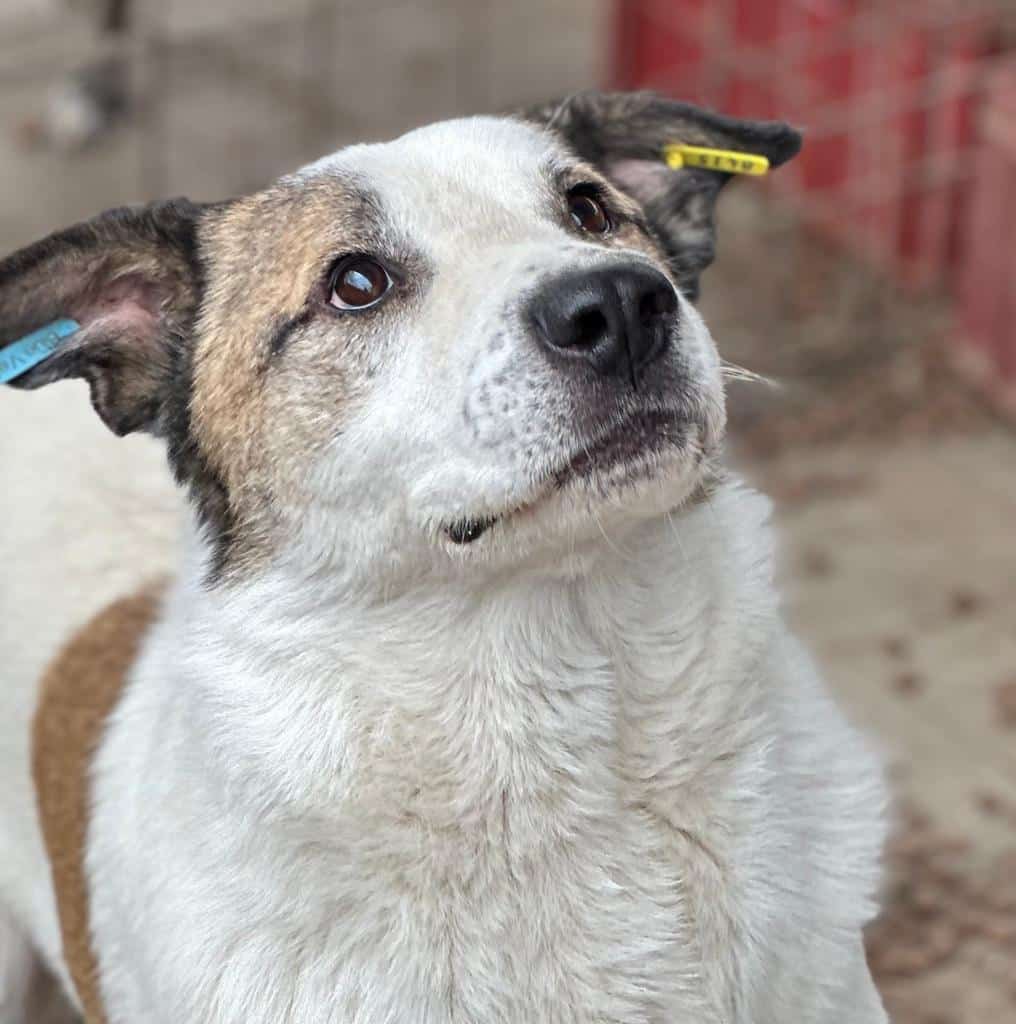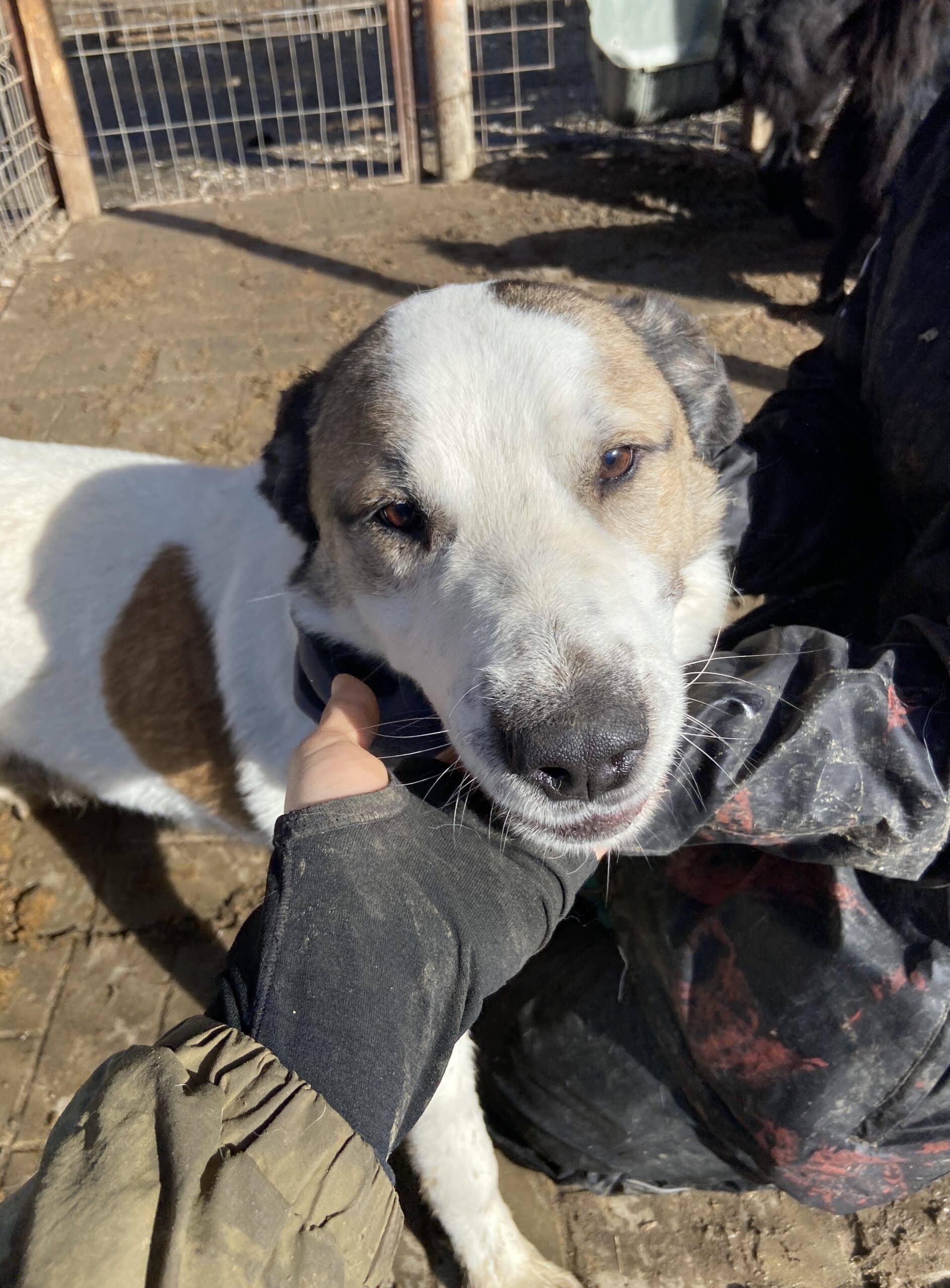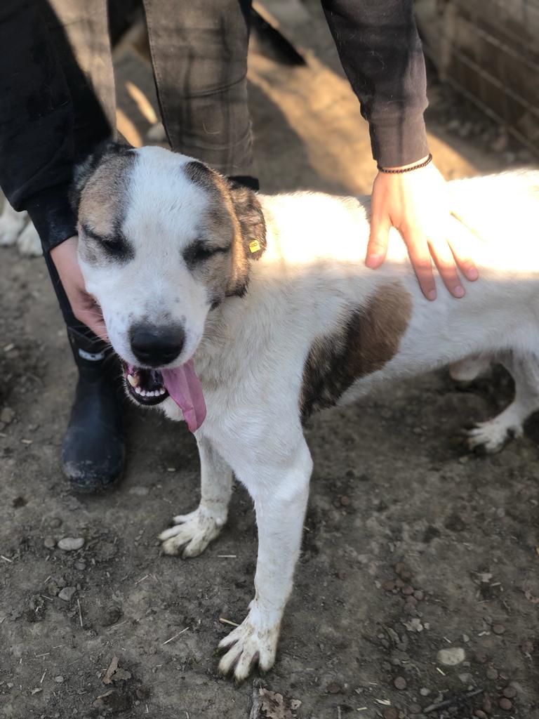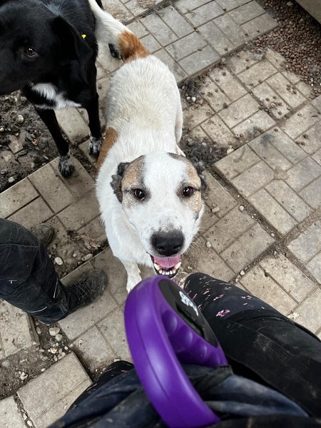 MOGLI erwartete uns schon an der Kenneltür. Leider sahen wir, dass er Hautprobleme entwickelt. Der super freundliche Bub findet Menschen total interessant und Leckerlis noch mehr.