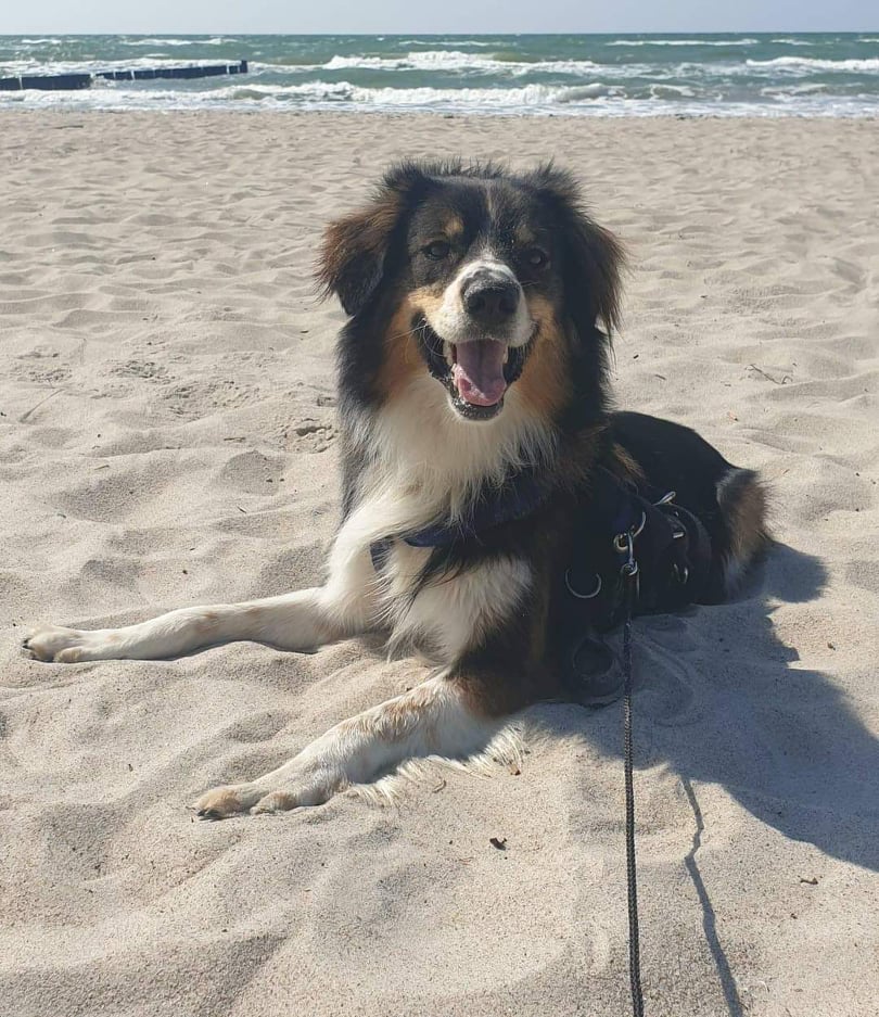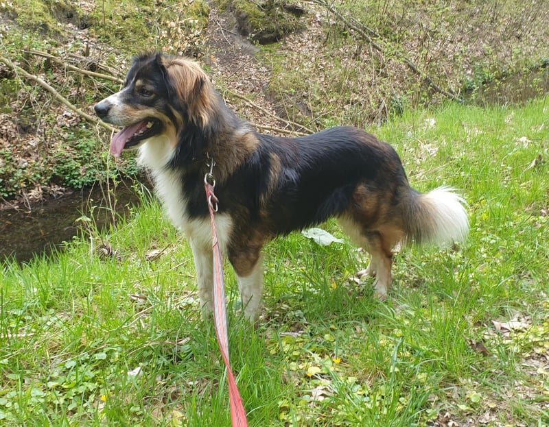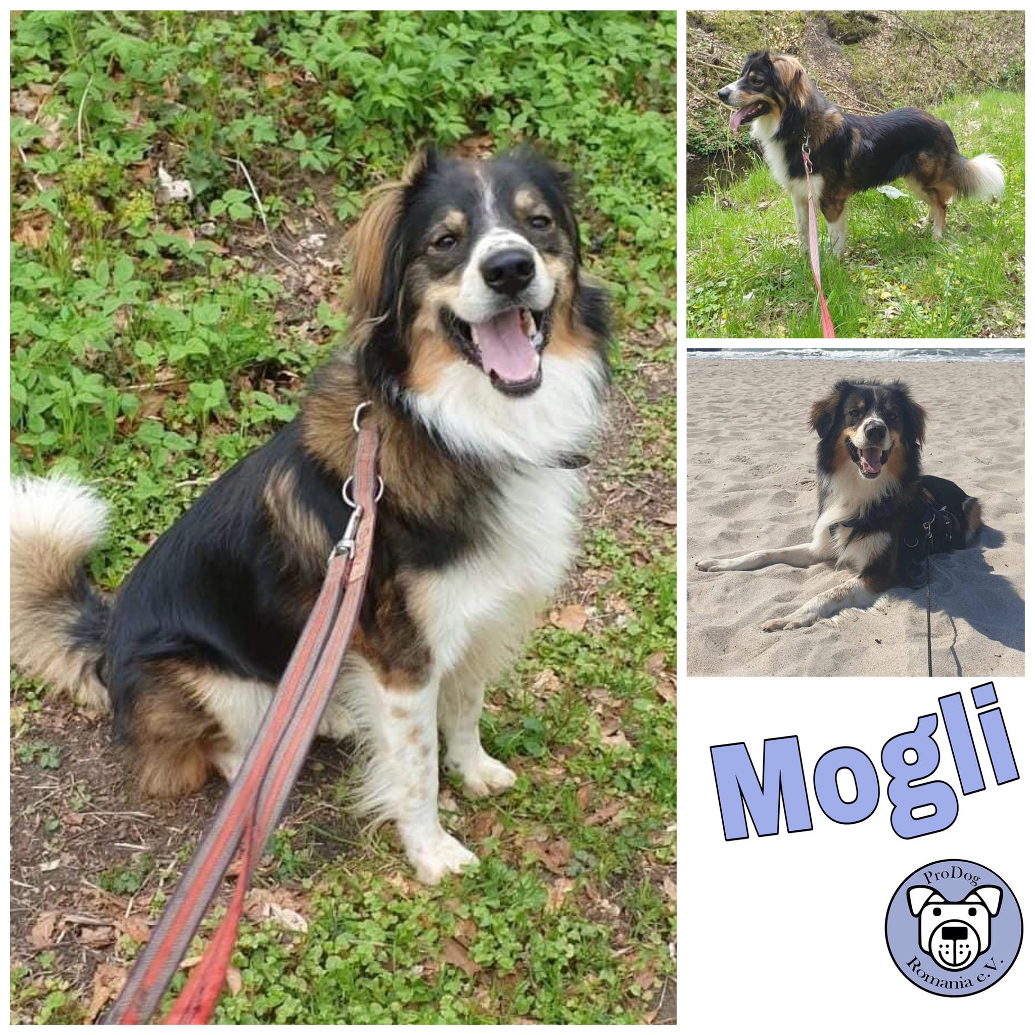 Mogli ist verträglich, aufgeschlossen, neugierig und unheimlich verschmust. Außerdem läuft er gut an der Leine und fährt problemlos im Auto mit.