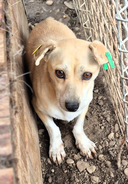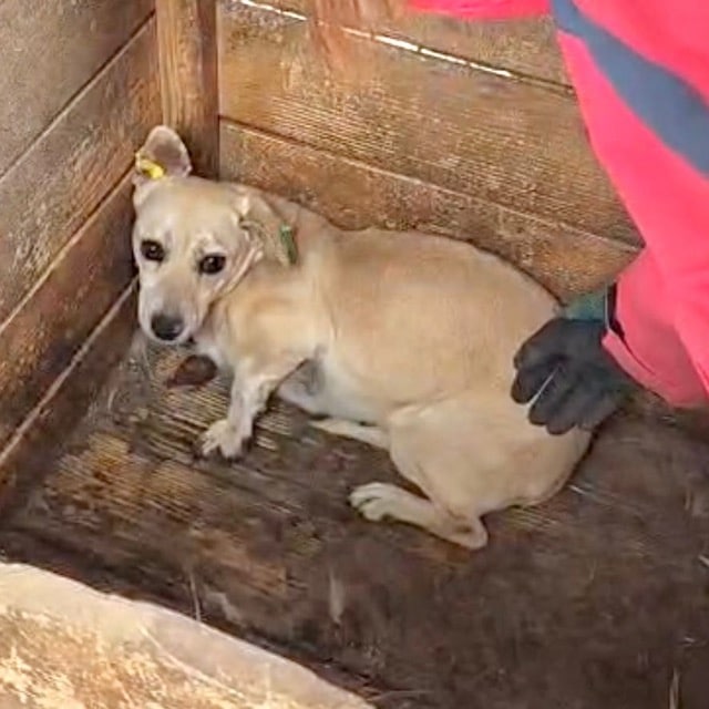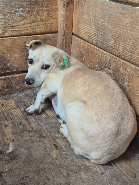 Dieses kleine Mädel war in ihrem Kennel völlig überfordert. Alles machte ihr Angst und sie hätte sich am liebsten unsichtbar gemacht. Wir sind uns sicher, dass sich das in einer ruhigen Umgebung mit der entsprechenden Zeit legen wird. Im Zwinger kamen wir nicht an sie ran, in der Hütte ließ sie sich ohne Abschnappen berühren.