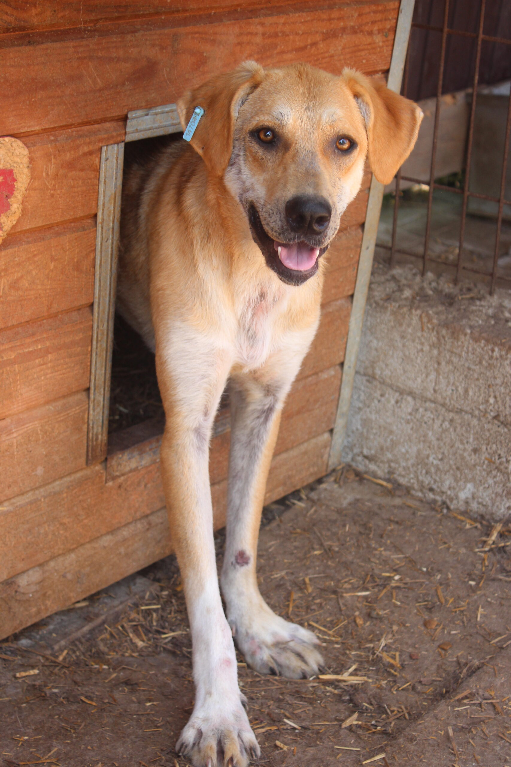 MOJO hat derzeit leider ordentlich Hautprobleme. Ohne aufdringlich zu werden hat er Kontakt zu uns gesucht und dann die Streicheleinheiten in seiner Hütte sehr genossen. Am liebsten wäre er dabei eingeschlafen. Ein rührender Junge, dem niemand eine Chance gegeben hat, sodass er im Shelter aufwachsen musste.