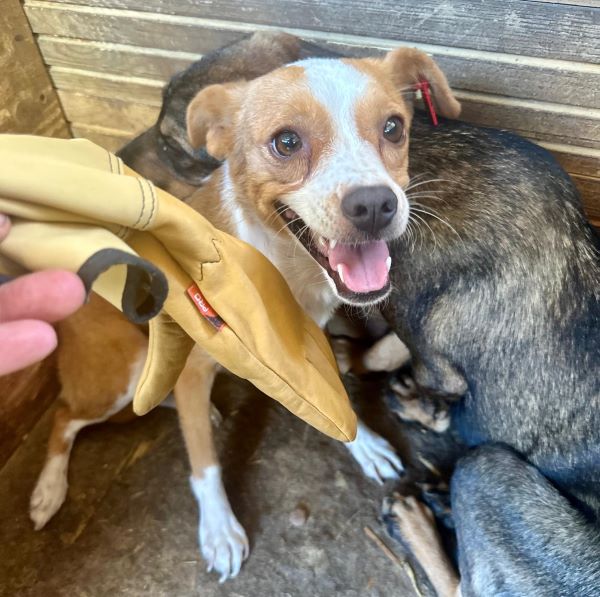 Molina besuchten wir kurz vor Abfahrt zum Flughafen. Leider hatten wir unsere „Hand mit Stil“ nicht dabei, um zu testen, wie stark sie unter Bedrängung schnappt. Mit angezogenen Handschuh hätte wohl Spuren in unserer Haut hinterlassen, so dass wir es leider nur mit ausgezogenen Handschuh zeigen können, das Molina eine echte Angstschnapperin ist. Sie flüchtet nicht in Panik, was schon mal gut ist, sondern stellt sich dem Feind – hier dem Handschuh. Wer Ahnung mit unsicheren Hunden hat, die aus Angst zunächst ordentlich zuschnappen können, werden Molina helfen können. Sie ist nicht Mega scheu dabei, hat nur gelernt wie sie den Menschen dabei auf Abstand halten kann. Hier müssen ihr andere Lösungsvorschläge angeboten werden, in dem ihr gezeigt wird, dass wir Menschen ihr nichts Böses wollen. Vielleicht wird sie ja dennoch von den richtigen Menschen mit Hundesachverstand gesehen. In der Hundegruppe ist sie wie immer sehr verträglich. Was noch besonders auffallend war, dass sie mittlerweile leider sehr stark abgenommen hat.