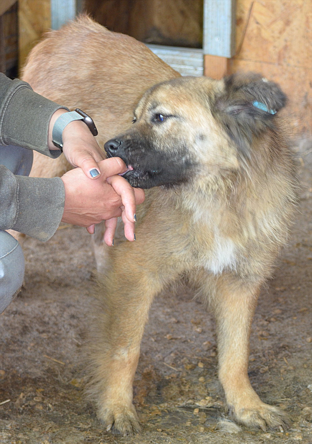 Hündin, kastriert geb. ca. 2020 Größe: ca. 40cm verheilte Bisswunde auf dem Rücken, zu dünn (04/2022)