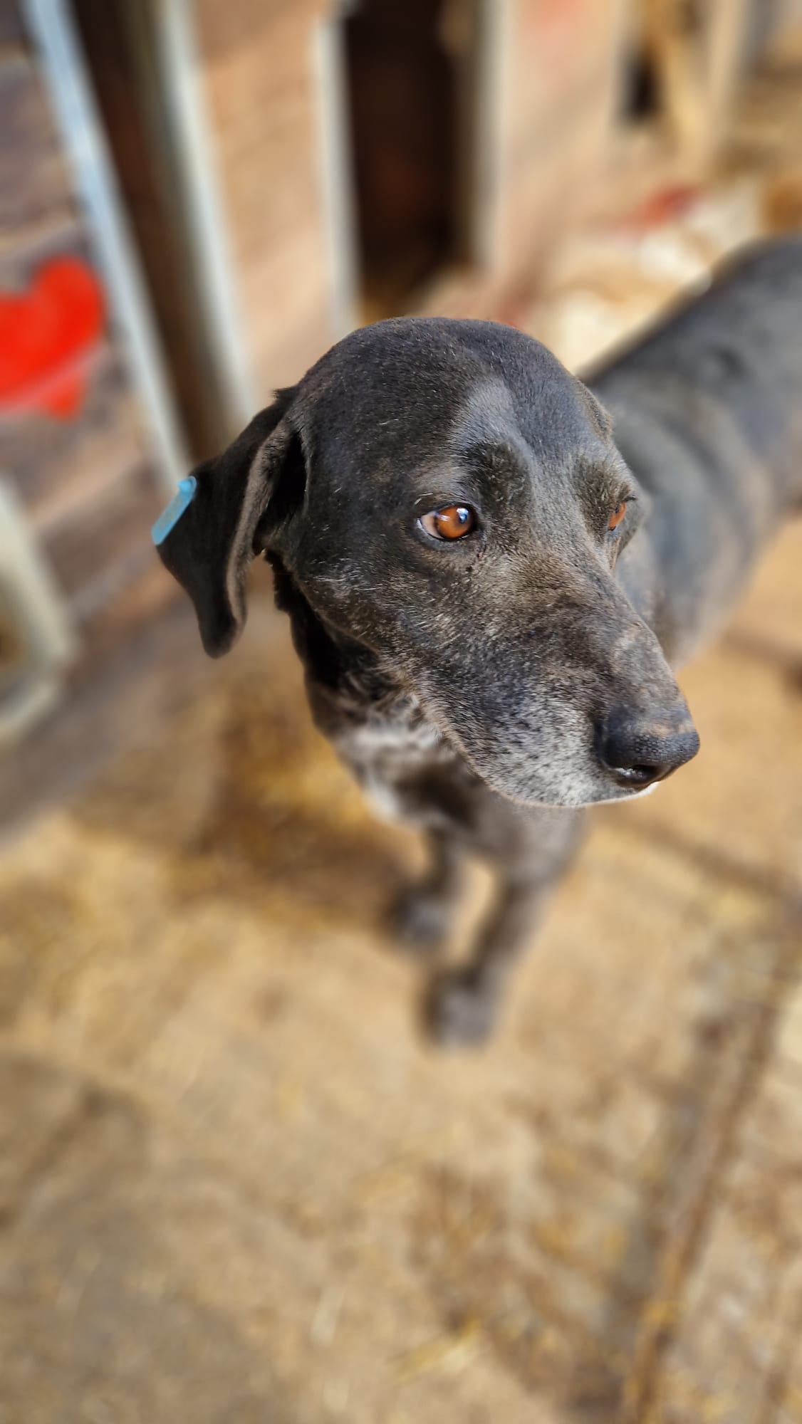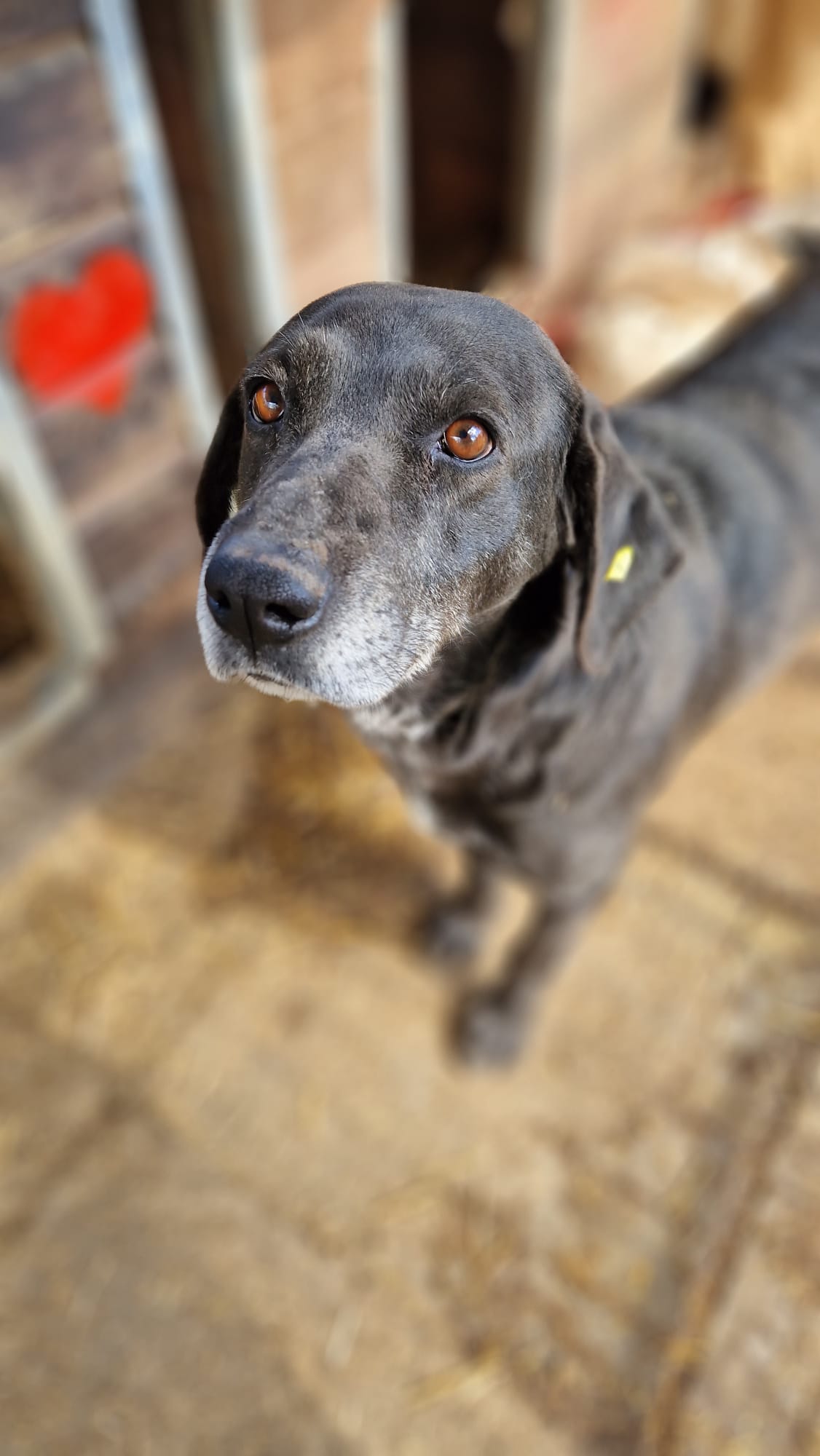 MONIE ist eine sehr liebe, etwas ältere Hündin, die anfangs nur in ihrer Hütte saß.