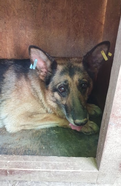 Mit anderen Hunden hatte MONNA keine Probleme, sie lebt mit mehreren Artgenossen unterschiedlichen Geschlechts zusammen und alle Hunde scheinen sich gut miteinander zu verstehen. Es tat uns sehr leid, dass eine alte Schäfi-Hündin so ihren Lebensabend verbringen muss, denn ihre Chancen stehen wohl mehr als schlecht, nochmal ein Zuhause zu finden.
