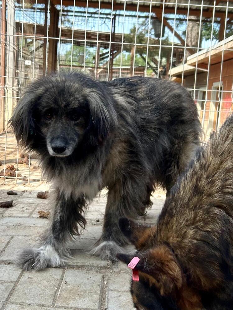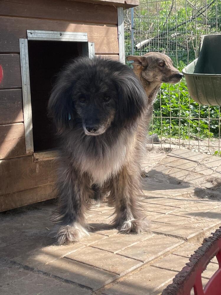 Bei MOON konnten wir auch aufgrund des langen Fells das Geschlecht leider nicht feststellen. Er/Sie beobachtete uns zunächst aus sicherer Entfernung. Mit Leckerli konnten wir MOON etwas näher zu uns locken, aus der Hand nahm er/sie die Leckerli aber noch nicht. Als wir MOON in der Hütte bedrängten, konnten wir ihn/sie mit der falschen Hand streicheln. Als es MOON etwas zu viel wurde, drohte er/sie leicht und deutete ein Schnappen an.