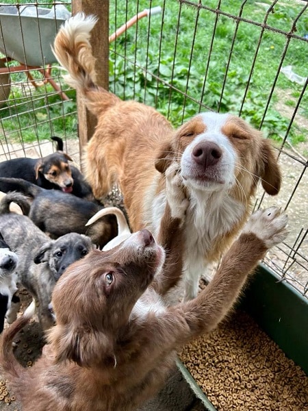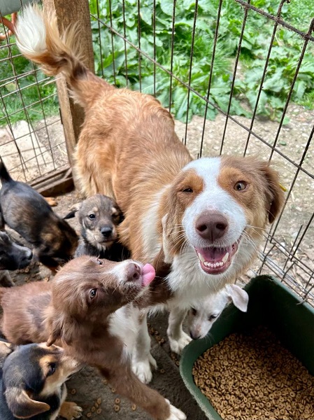 Eine sehr freundliche Hündin, die ihre eigenen und vermutlich auch ein paar fremde Welpen gut durch die Shelterzeit bringt. Insgesamt sitzt sie mit 13 Welpen in einem kleinen Kennel. Der Nachwuchs ist inzwischen alt genug und braucht die Mama nicht mehr. Die liebevolle und menschenbezogene Hündin sollte jetzt schnell raus aus dem Shelter und ein eigenes Körbchen beziehen dürfen.