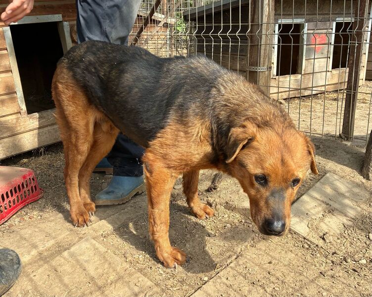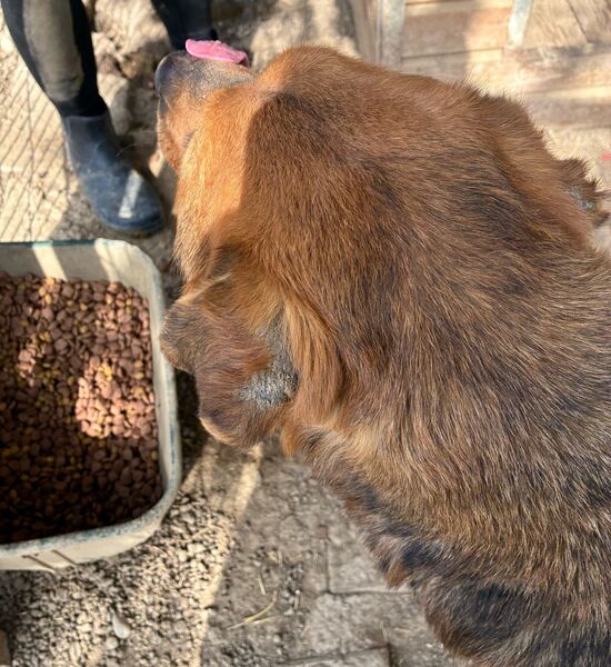 zur Besonderheit: | Baut stark ab, viel zu dünn, entzündete Augen, geht steif, humpelt, fehlendes Fell an den Ohren (4/25);kurze Rute, kaputte Zähne; seit 2020 im Shelter |