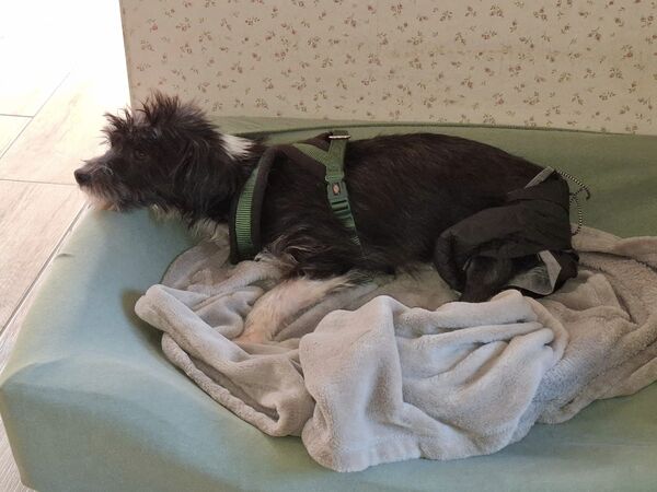 Mottchen hier genannt ist von der Hüfte an gelähmt und ist damit auch Stuhl-und Urininkontinent. Sie trägt deshalb Windeln und wenn es nach draußen in den Garten geht auch ihre kleinen „Strümpfe“. Entweder Babysöckchen die sie regelmäßig durchtanzt oder bekommt für längere Aufenthalte draußen ihre Füßchen gepolstert und gewickelt.