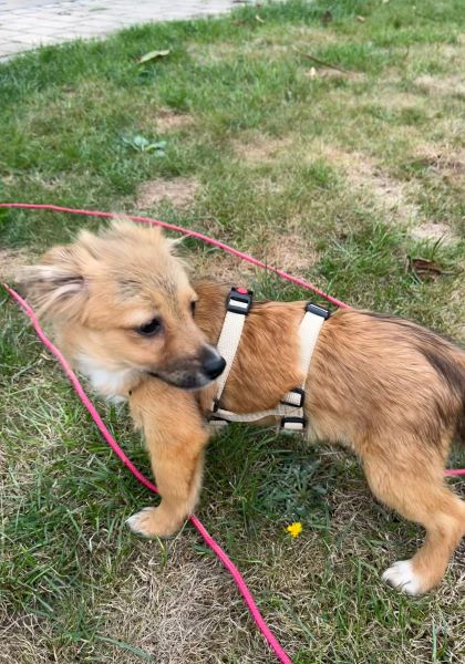 Unsere kleine Motte ist ein echter Sonnenschein – welpentypisch verspielt und immer für ein Abenteuer zu haben! Sie steckt voller Energie und hat jede Menge lustigen Blödsinn im Kopf. Motte ist sehr aufgeweckt und zeigt, wenn sie unsicher ist oder sich erschreckt, das gern mal durch ein kleines Bellen. Alleine sein mag sie gar nicht – sie ist eine richtige Schmusebacke und liebt es, in der Nähe ihrer Menschen zu sein und ganz viel Liebe zu bekommen.