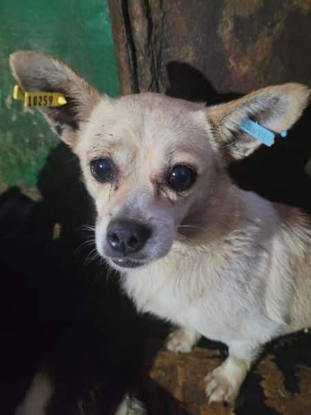 Bei der Erfassung saß sie noch im dunklen VetKennel mit vielen anderen Hunden auf engem Raum eingepfercht. Sie war noch nicht lange im Shelter und gerade frisch kastriert. Nun sitzt sie mit vielen anderen Hunden in einem Außenkennel, was leider sehr gefährlich ist.