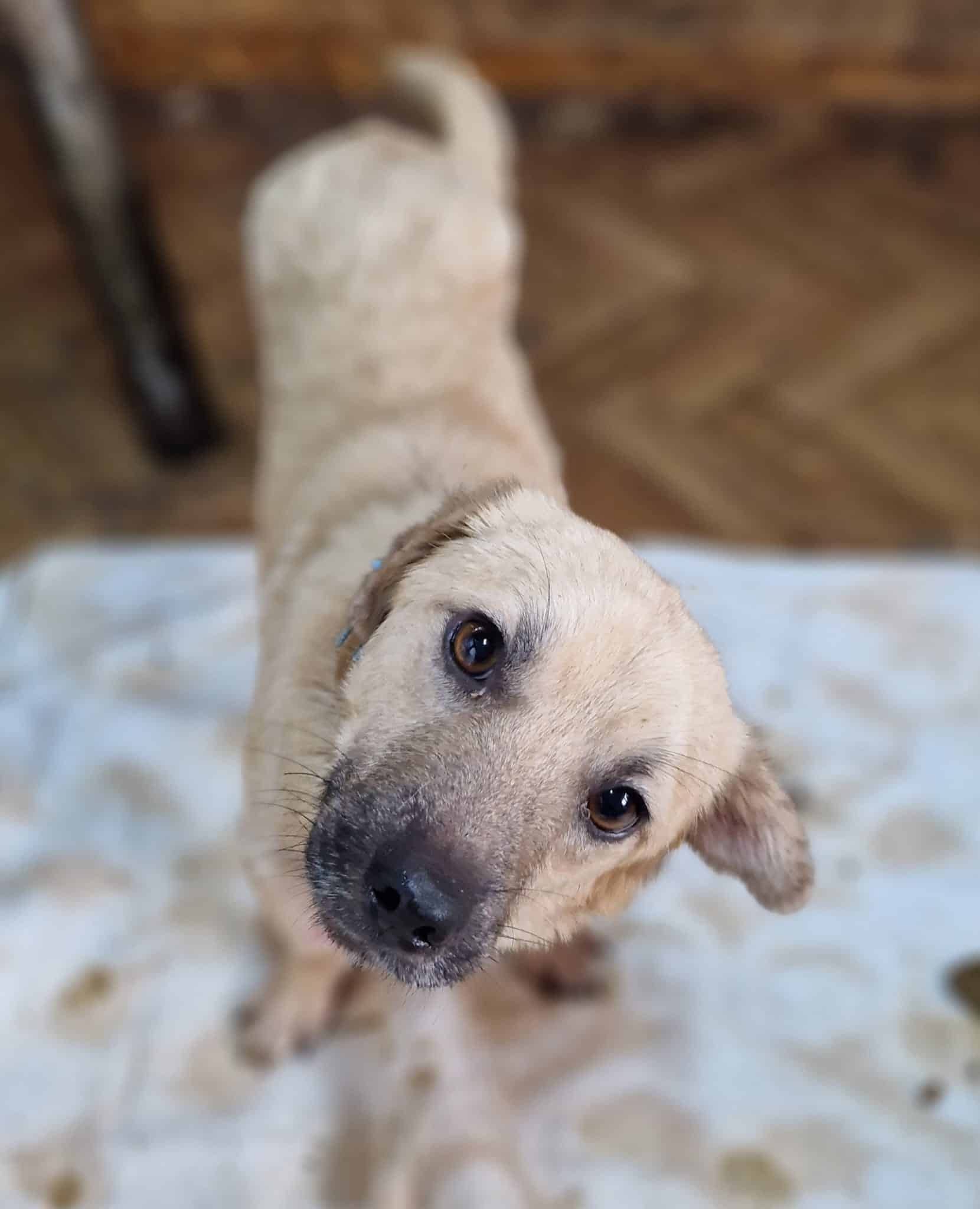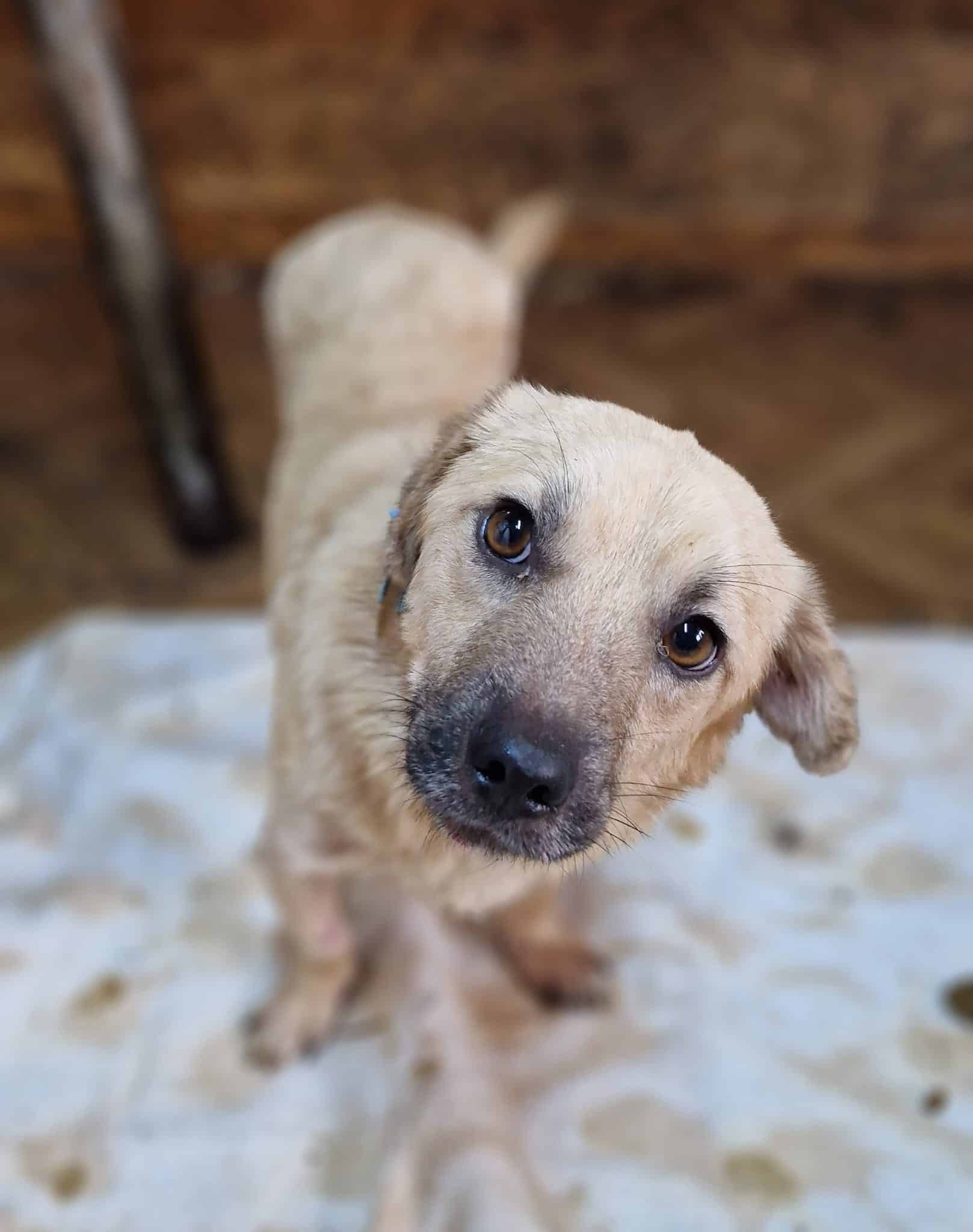 Der liebe kleine MUCKI hat uns sehr berührt. Schüchtern saß er unter dem Tisch in Mihaela’s Büro. Tierärztin Catalina hat ihn uns gezeigt. Der Kleine hat eine Kopfschiefhaltung und man wolle ihn so nicht in einen Außenkennel setzen. Nun sitzt in den ganzen Tag zwischen Welpen in einem kleinen Raum und sieht nichts von seiner Umwelt. Anfänglich zögerte er, ob wir es gut mit ihm meinen. Als er die ersten Streicheleinheiten spürte war er so erleichtert und suchte zaghaft unsere Nähe. Er ließ sich die Zähne anschauen und überall anfassen, insgesamt wirkte er ruhig und traurig.
