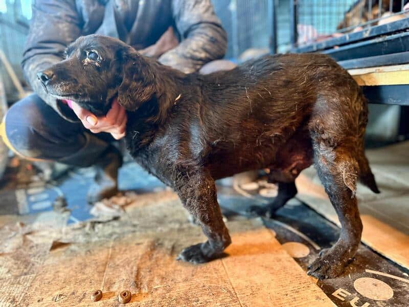 Wir haben Muffin auf dem Boden liegend im Container in Bucov gefunden. Ein Bild, welches uns zu Tränen rührte. Sein Leben hat ihn mehr als gezeichnet. Und dennoch zeigte er uns bereits dort, dass er auf seinen krummen Beinen noch am Leben teilhaben möchte. Er fraß gut und genoss unsere Nähe. Wir konnten ihn unmöglich da lassen – auf dem Boden unter den Käfigen. Da sofort sichtbar war, dass er einge gesundheitliche Baustellen hat – u.a. einen Stickertumor und er atmete tief in den Bauch, trauten wir uns nicht ihn bereits in die Galerie zu stellen. Wir organisierten noch für die selbe Woche einen Transport nach Deutschland, damit er in Deutschland einem Tierarzt vorgestellt werden kann. Karfreitag angekommen und Dienstag Morgen war bereits der erste Besuch. Es kam viel mehr zusammen, als wir bereits vermutet hatten. Muffin zeigt deutlich, dass er dennoch leben möchte und diese Chance möchten wir ihm nun zusammen mit Gnadenplatzrettungspaten und Gnadenplatzpaten geben.