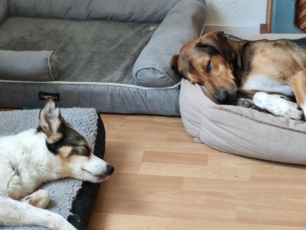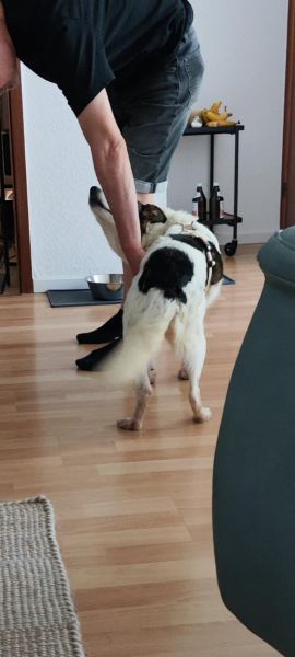 Muffy ist eine ganz liebe und ruhige Hündin. Sie ist stubenrein, läuft gut an der Leine, fährt entspannt im Auto mit, bleibt auch mal ein Stündchen alleine, ist mit Artgenossen verträglich und geht sehr gerne spazieren. Muffy würde zu Menschen passen, die einen freundlichen, weniger aktiven und ruhigen Hund suchen, gerne auch als Zweithund. Homeoffice ließe sich gut mit ihr vereinbaren, auch zu älteren Menschen würde sie gut passen.
