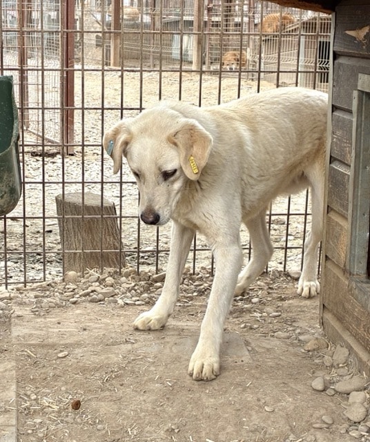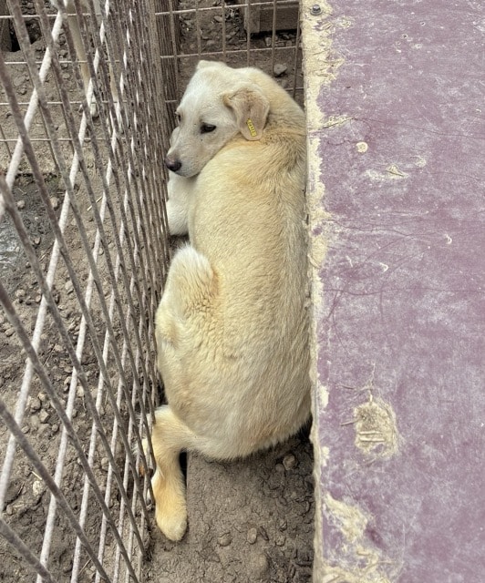 Unser süßer MUMIN mit den ausdrucksstarken Augen kam vor mehr als einem Jahr mit seiner Hundefamilie in das riesige Shelter. Sie alle durften zusammen in einen Außenkennel ziehen und scheinen bisher keinen Kontakt zu Menschen gehabt zu haben. Entsprechend skeptisch zeigte sich MUMIN auch bei diesem Besuch. Er ist der Größte in seinem Kennel und zugleich der Unsicherste. Als wir den Kennel betraten, hielt er sich hinter der Hütte versteckt. Dort eingezwängt liegend konnten wir ihn problemlos berühren – er hatte quasi keine andere Wahl, als es über sich ergehen zu lassen. Es brauchte etwas Überzeugungsarbeit, bis MUMIN seinen sicheren Platz verließ und dann geduckt durch den Kennel huschte. Ein trauriger Anblick, der uns auch im Nachhinein noch tief berührt. Die hineingeworfenen Leckerlie wollte er nicht fressen, sondern schnupperte nur kurz daran. Nie hatte MUMIN die Chance, zu lernen, was Vertrauen ist. Daher suchen wir einen sehr erfahrenen Platz bei einfühlsamen Menschen, die ihn an die Pfote nehmen und Stück für Stück an ein Zusammenleben auf der Sonnenseite heranführen, damit er endlich Geborgenheit erfahren darf. Ein netter Ersthund wäre dabei ein Muss und eine Stütze, da er sich in seinem aktuellen Rudel kein zutrauliches Verhalten abschauen kann. Wir wünschen dem sensiblen MUMIN, dass dieser trostlose Ort nicht seine Endstation sein muss – er hat schließlich noch sein ganzes Leben vor sich.