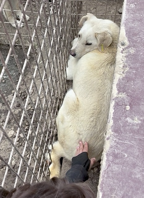 Zunächst schaute MUMIN was wir machen, aber als wir näher kamen und ihn anfassen wollten, reagierte er mit Abschnappverhalten. Ein Anfassen war leider nicht möglich und im VetKennel alles viel zu eng, um ihn zwischen den anderen Hunden weiter zu bedrängen. Er bräuchte ein sehr erfahrenes Zuhause. Vielleicht hatte er bisher wenig Menschenkontakt. Ein Souveräner Zweithund wäre sehr wichtig. Einzelhund wäre nicht fair, wo die Menschen ihm so unbekannt sind.