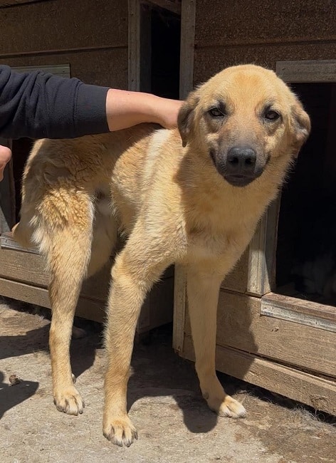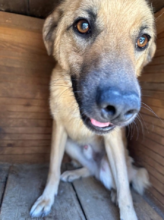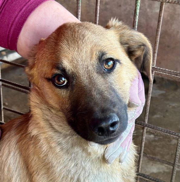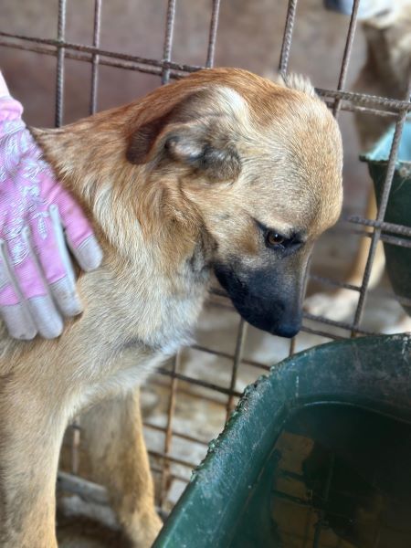 MURI ist inzwischen wieder in einen Außenkennel umgezogen. Sie war dort neugierig und kam auch mal, um an der Hand zu schnüffeln, ist aber unsicher und dann vor uns geflüchtet.