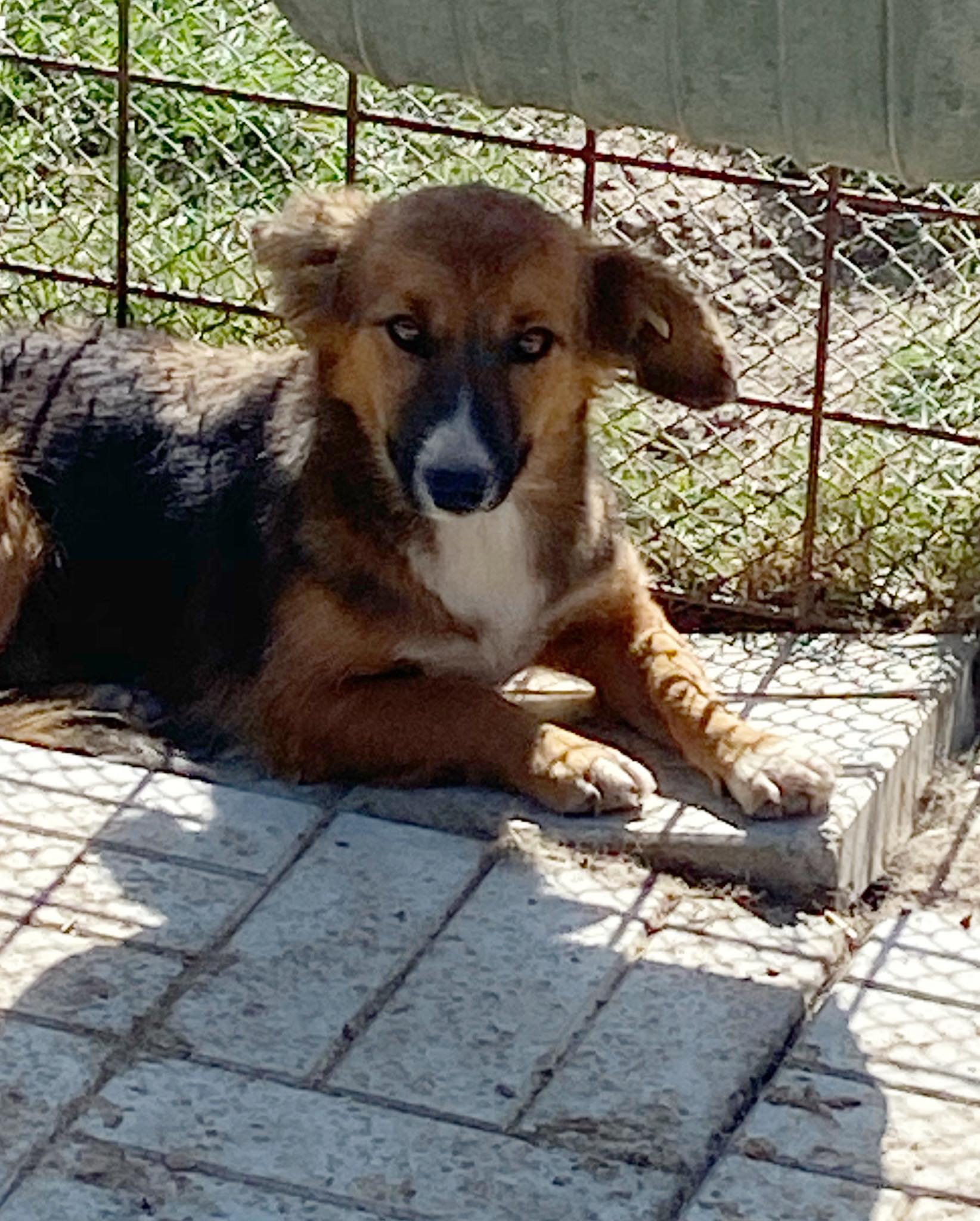 Leider ist die schöne Junghündin uns immer wieder ausgewichen, als wir uns ihr genähert haben. Sie hat jedoch das Geschehen immer freudig aus der Ferne beobachtet. Es war aber auch sehr heiss am Tag der Erfassung, der Kennel in der prallen Sonne und sie hat immer wieder einen Schattenplatz gesucht. Anfassen konnten wir die sie daher leider nicht. Sie ist nicht direkt ängstlich, eher vorsichtig und zurückhaltend. In einem geeigneten Zuhause bei Leuten die etwas Erfahrung und Geduld mitbringen wird sie bestimmt aufblühen.Auch von souveränen anderen Hunden würde sie profitieren.