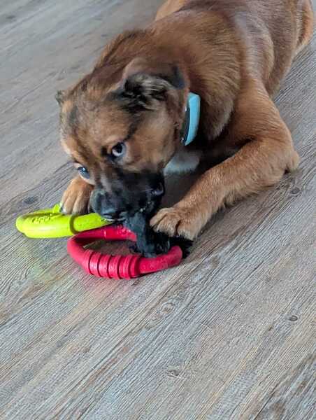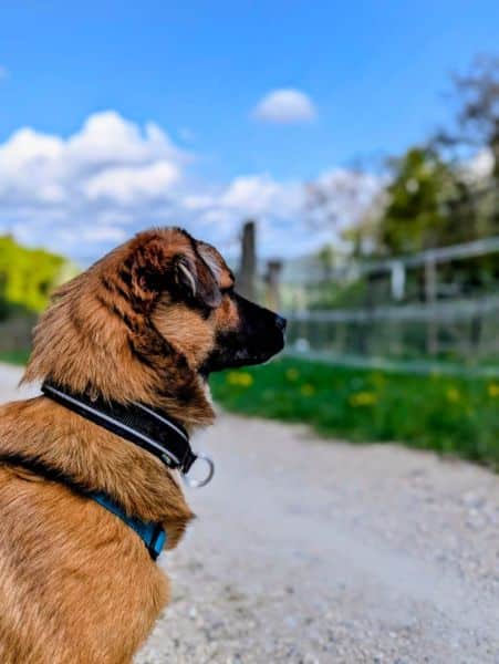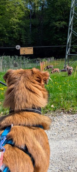 Auch den Rückruf mit der neuen Pfeife hatte er ruckzuck verstanden. Nach einem langen Spaziergang kann er auch kurze Zeit alleine bleiben. Er ist sehr wachsam und schlägt an, wenn er etwas hört. Er ist aber kein Kläffer und hört mit dem Bellen sofort auf, wenn man ihn zu sich ruft. Er liebt andere Hunde, egal ob Bernhardiner oder Chihuahua.