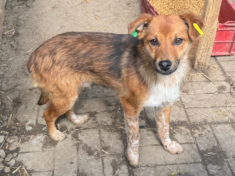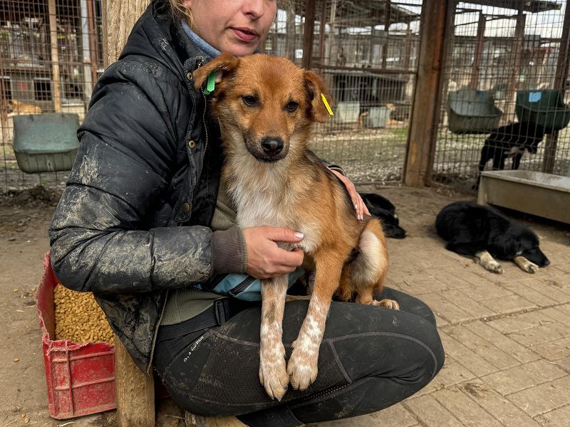 Mylo ist ein wunderschöner 41cm kleiner Rüde mit einer einzigartigen Fellfärbung. Leider fehlt es dem hübschen Buben noch an Selbstbewusstsein und er wusste nicht, ob er was vor uns zu befürchten hatte. Somit ist er noch sehr vorsichtig in der Kontaktaufnahme und Rückzug scheint bisher für ihn gut funktioniert zu haben. So saß er erstmal beobachtend in einer Ecke und schaute sich ab wie die anderen auf uns reagierten. Als es Leckerchen gab, nahm der hübsche Kerl seinen ganzen Mut zusammen und nahm sie auch aus der Hand. Bei geduldigen Menschen wird der kleine Hundemann sicherlich schnell auftauen. Ohne Abwehrverhalten ließ er sich von uns festhalten und streicheln, auch wenn er es noch nicht genießen konnte. Auf dem Arm genommen zu werden, überforderte ihn dann doch und er wollte lieber wieder auf den Boden, wo er sich dann weiter streicheln ließ.