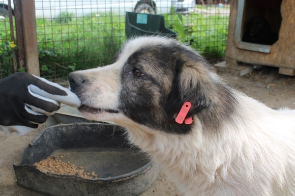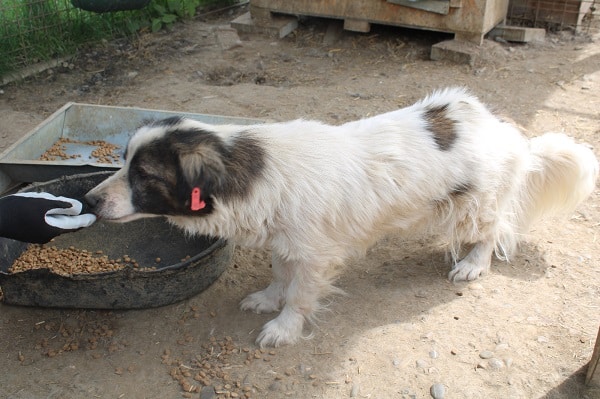 Mylo zeigte sich wieder etwas zutraulich. Futter nimmt er sehr gut aus den Fingern, richtig anfassen geht noch nicht. Bei Futter zeigt er ein Ressourcenthema. Aber deutlich und hündisch O.K.. Menschen mit ausreichend Erfahrung sollten das zu Händeln wissen.
