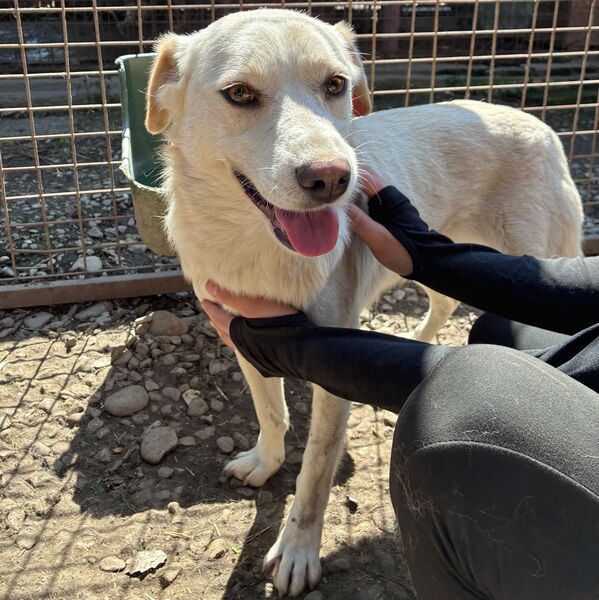 Die hübsche NADIRAH zeigte sich bei unserem Besuch wieder direkt sehr neugierig und interessiert. Gern nahm sie die Leckerlie aus unseren Händen, blieb stets in der Nähe und tänzelte um uns herum. In einer ruhigen Minute konnten wir sie in einer Kennelecke behutsam streicheln. Diese intensive Nähe ist noch etwas ungewohnt für sie, doch wir sind uns sicher, dass die zarte NARIDAH in einer geborgenen Umgebung rasch komplett Vertrauen fassen können wird. Während unseres Aufenthalts zeigte sie sich im gemischten Rudel verträglich, doch laut Aussagen der Tierschützerin vor Ort ist NADIRAH nur bedingt mit Hündinnen verträglich und hat diese in der Vergangenheit auch schon ernsthaft angegriffen. Daher sehen wir sie nur in sehr erfahrenen Händen und eher als Einzelhund bzw. bei souveränen Rüden. Wir wünschen dem lebensfrohen Mädchen, dass der Shelter nicht ihre Endstation ist.